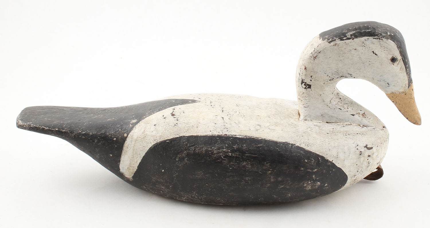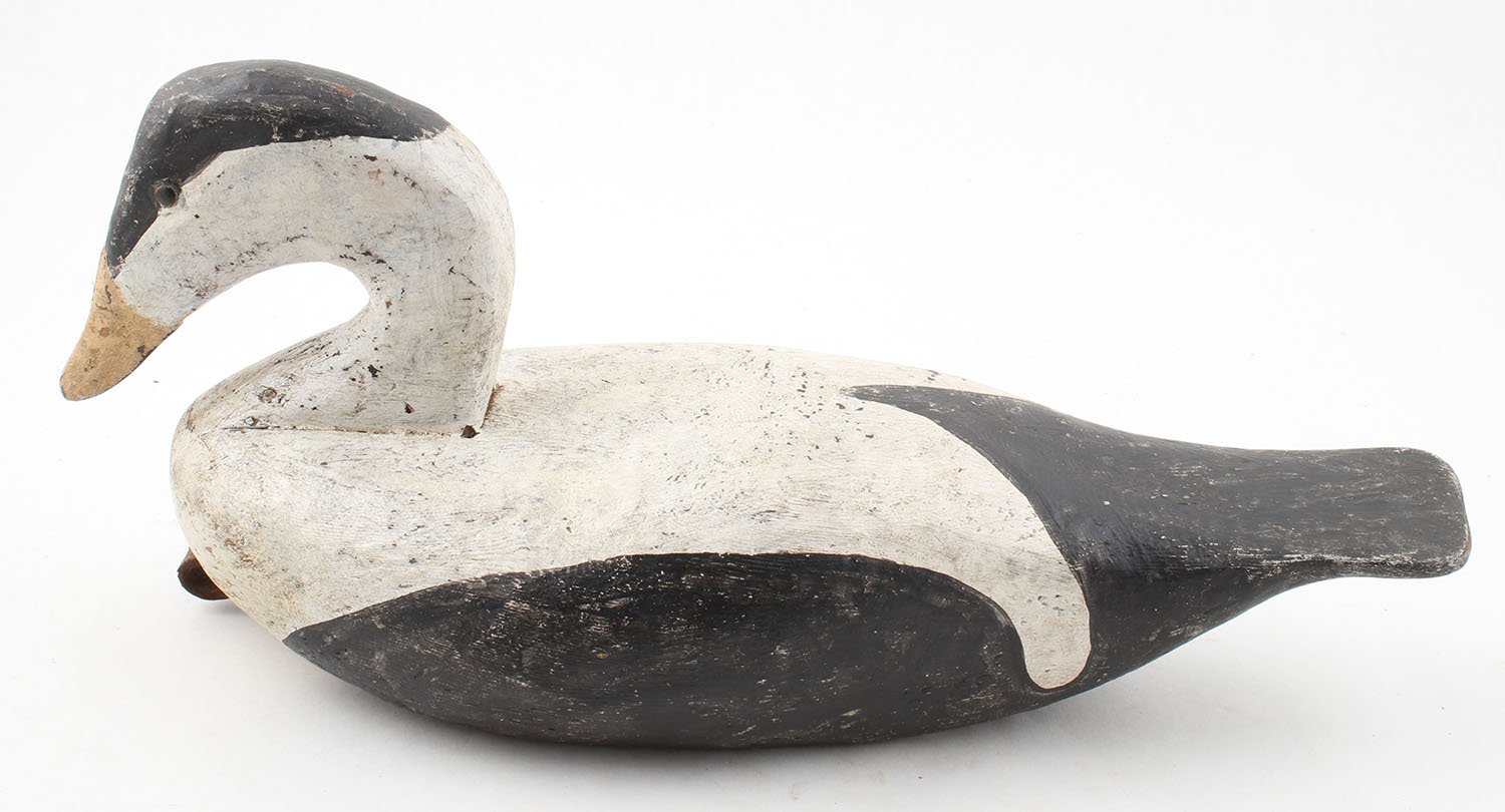 Eider by R.W Schaap, glass eyes, solid wood, original paint, structurally excellent, 16'' OAL. Grade: Excellent - Value: 200 to 1000