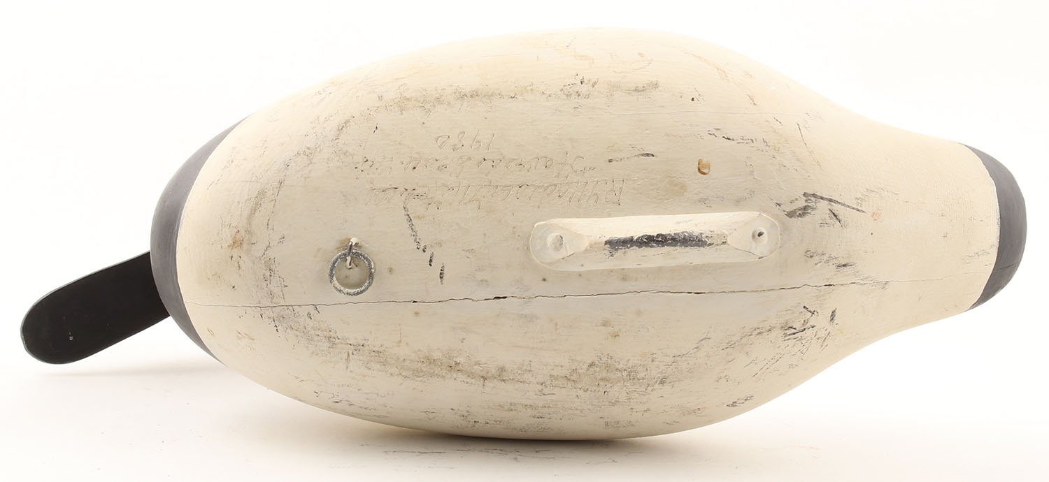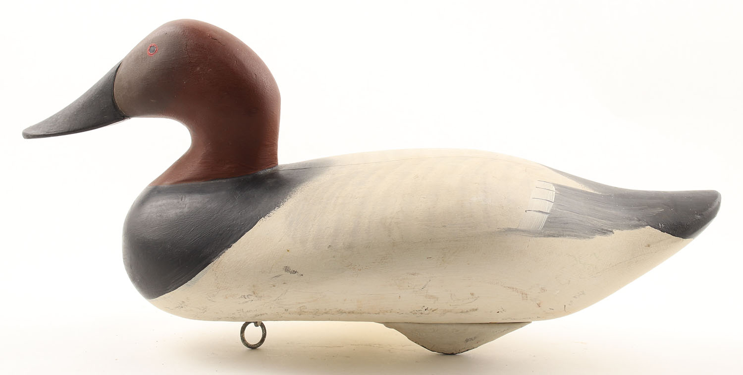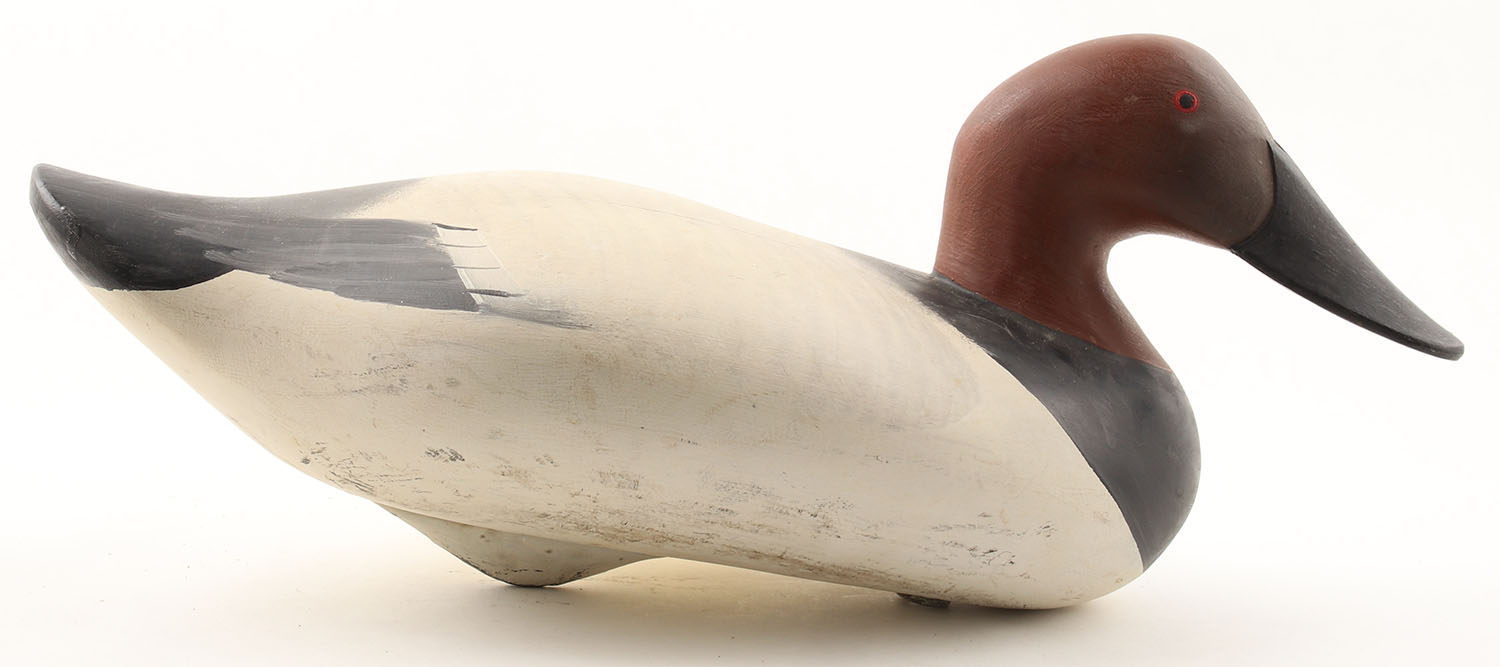 Canvasback Drake by R. Madison Mitchell, Havre de Grace, MD, 1980, painted eyes, solid wood, original paint, structurally excellent, 16'' OAL. Grade: Excellent - Value: 60 to 150