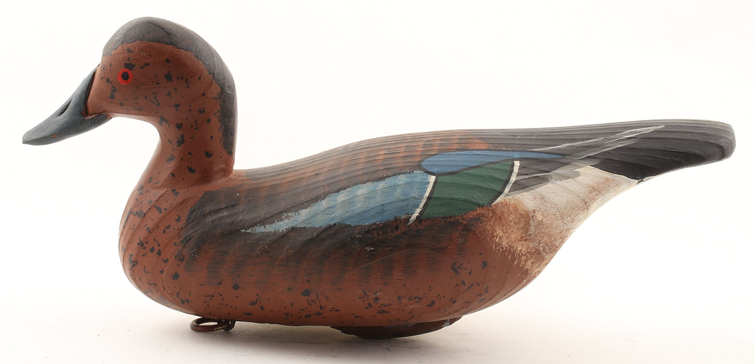 Cinnamon Teal Drake by Bryant, MD, painted eyes, hollow wood, original paint, structurally excellent, marked ''BRYANT'' on bottom, 13'' OAL. Grade: Excellent - Value: 50 to 100