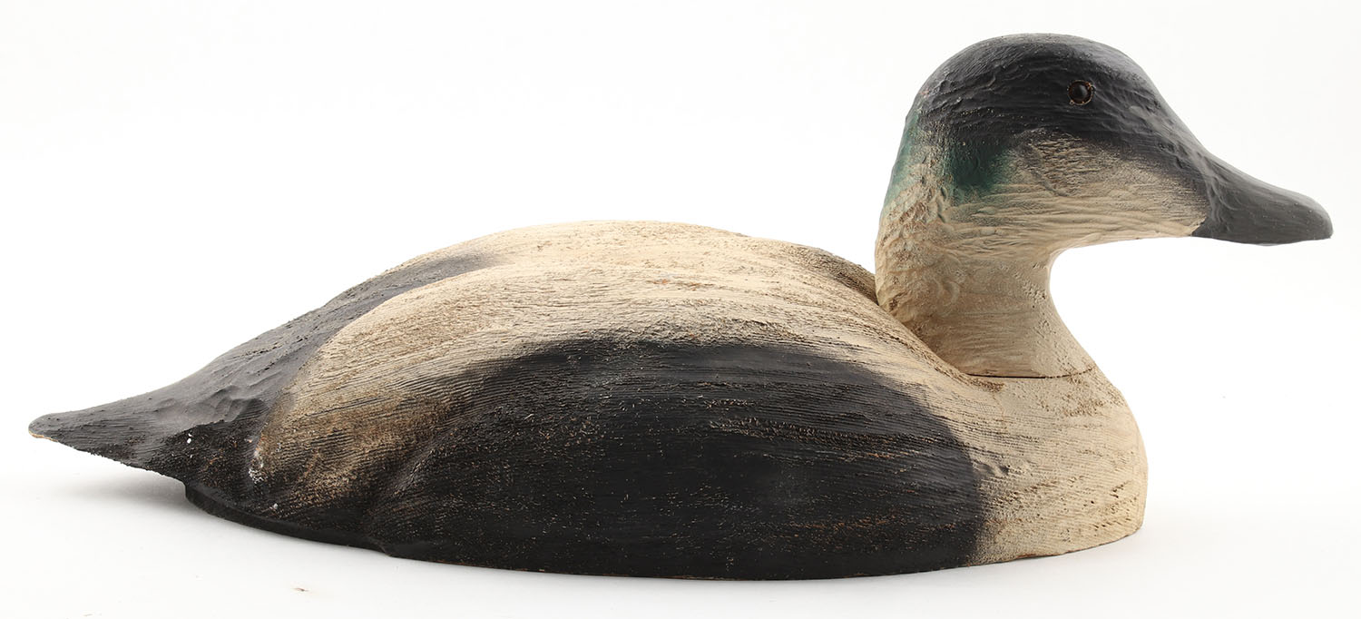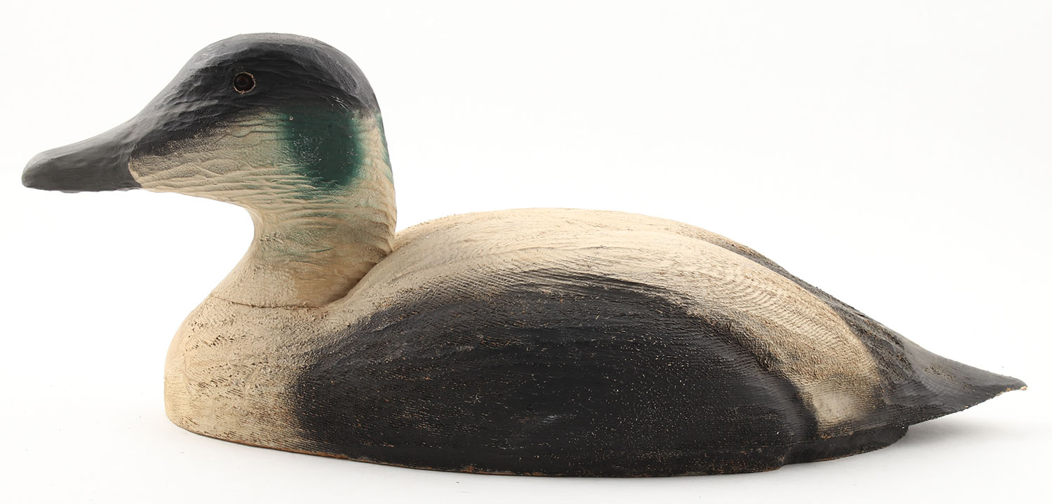 Eider by Herter's, Waseca, MN, 1969, in 1969 catalog page 383, glass eyes, solid wood, original paint, structurally excellent, 18'' OAL. Grade: Very Good++ - Value: 40 to 120