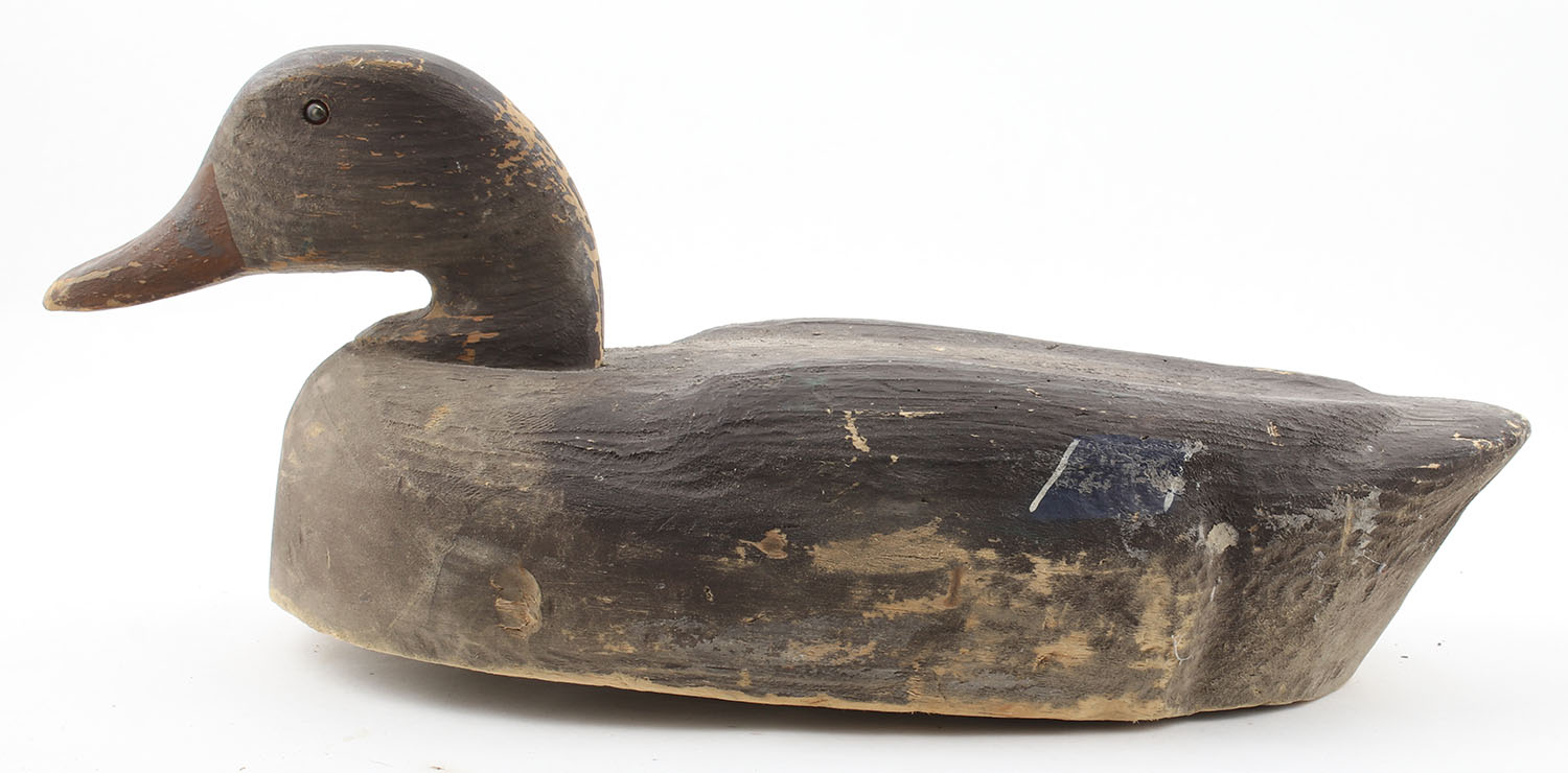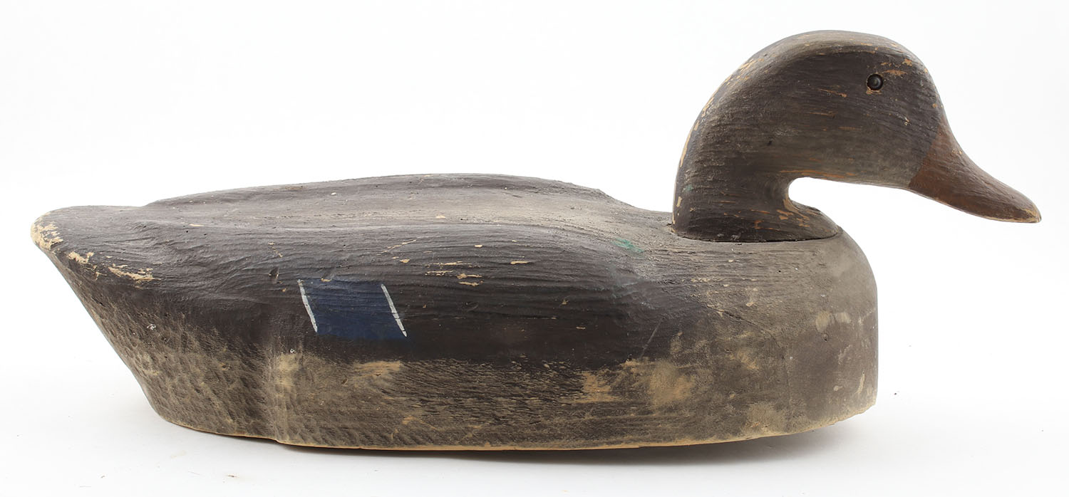Mallard Hen by Unknown Maker, glass eyes, balsa wood, original paint, structurally sound, 19 1/2'' OAL. Grade: Good - Value: 20 to 40