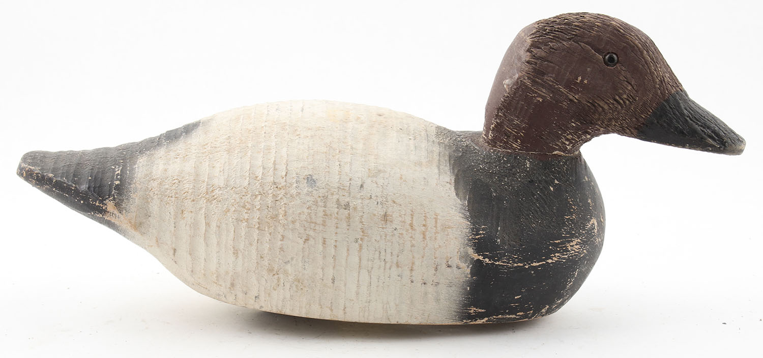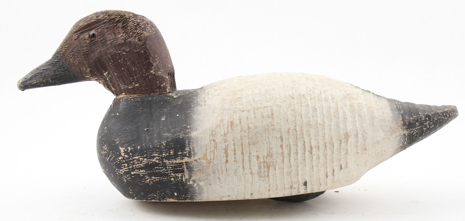 Canvasback Drake by Animal Trap Co., Mississippi, glass eyes, hollow wood, original paint, structurally sound, 15 1/2'' OAL. Grade: Very Good - Value: 30 to 60