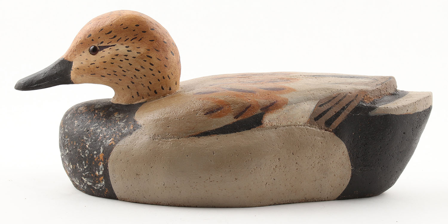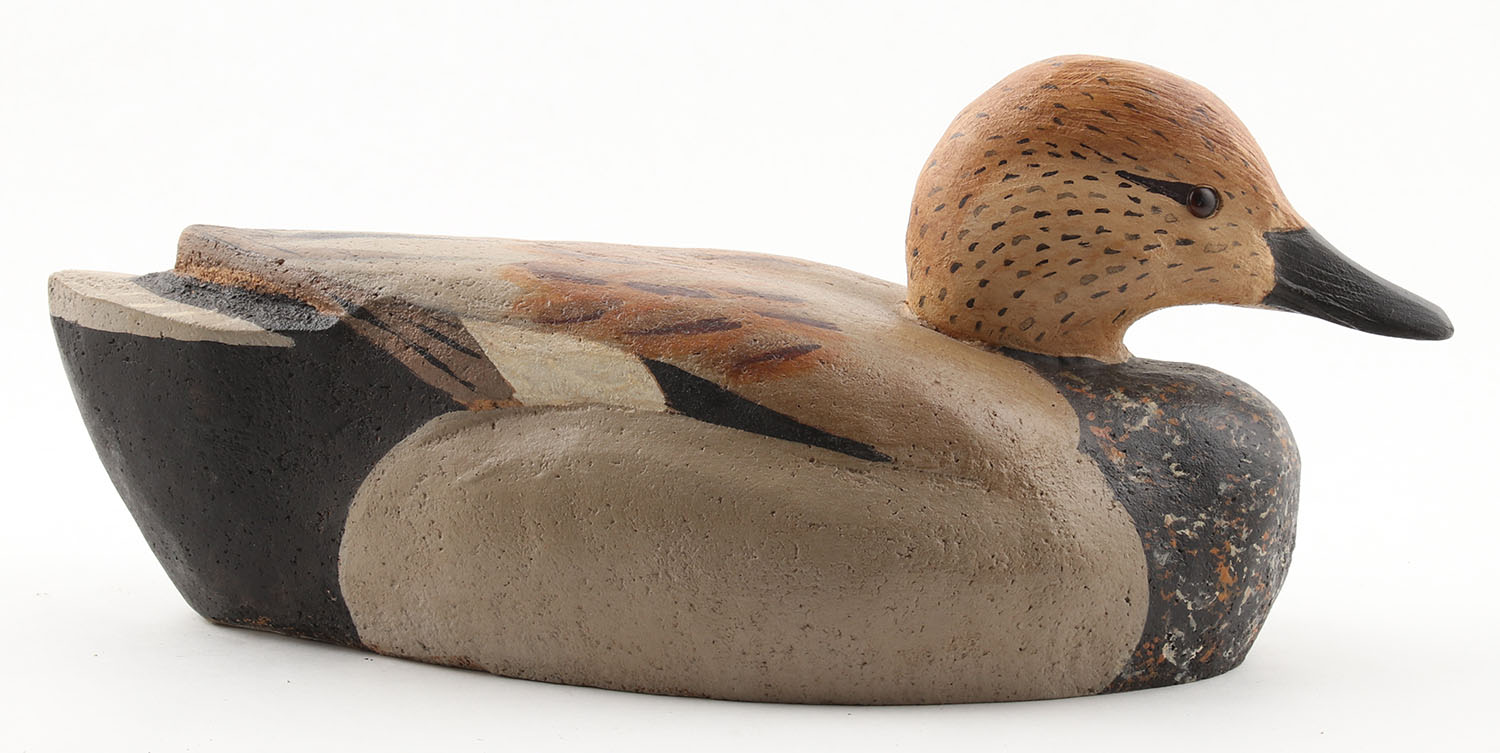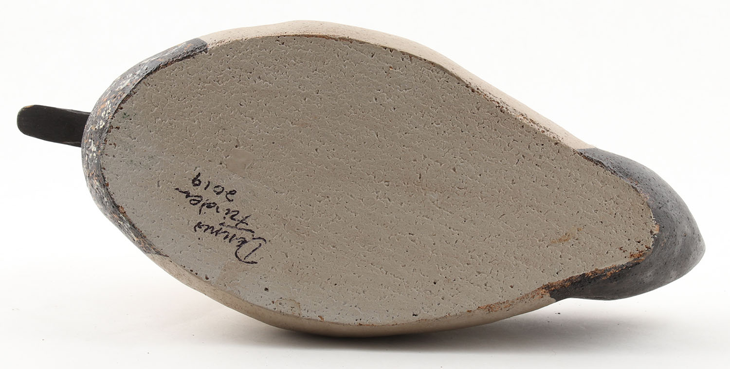 Gadwall Drake by Dennis Finden, South St. Paul, MN, 2019, glass eyes, cork body, original paint, structurally excellent, signed on bottom. Grade: Excellent - Value: 10 to 50