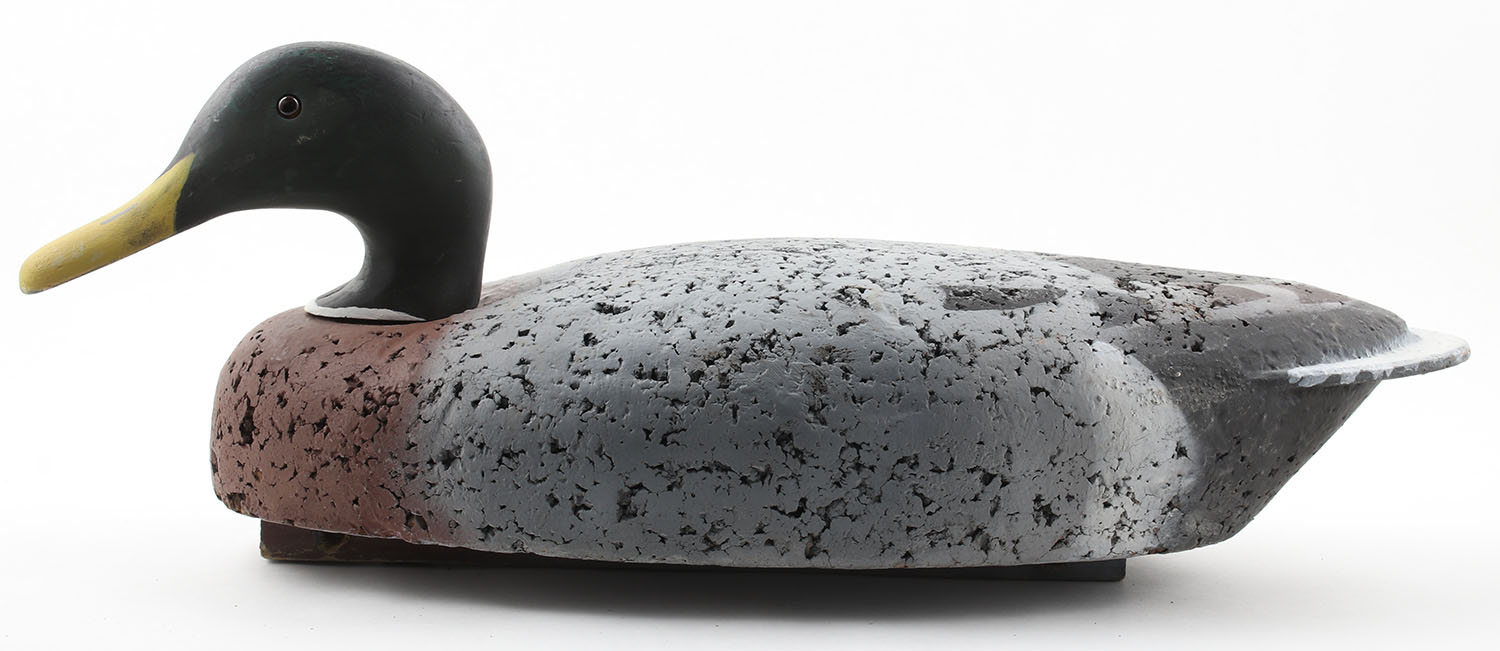 Mallard Drake by Unknown Maker, glass eyes, cork body, wood head, original paint, structurally excellent, 20'' OAL. Grade: Excellent - Value: 10 to 30