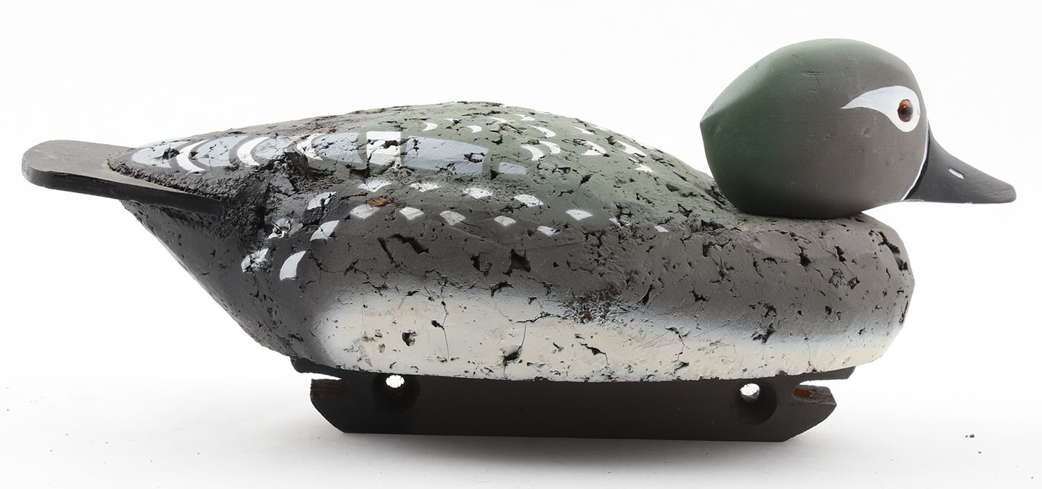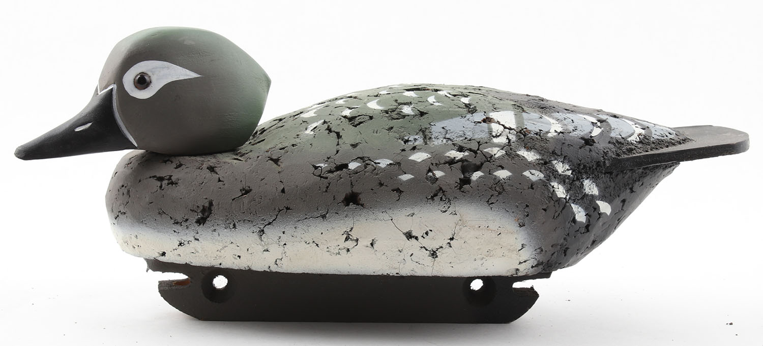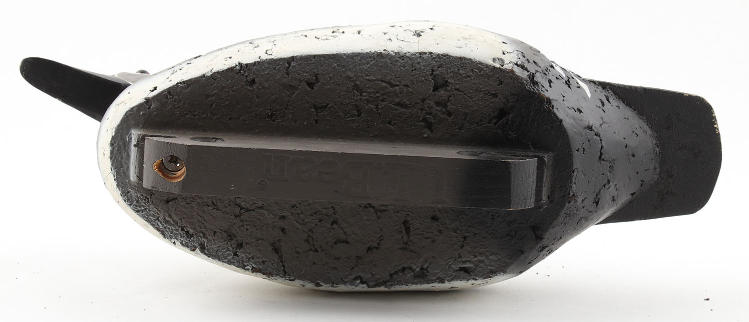 Woodduck Hen by L.L. Bean, glass eyes, cork body, wood head, original paint, 15'' OAL. Grade: Excellent - Value: 10 to 30