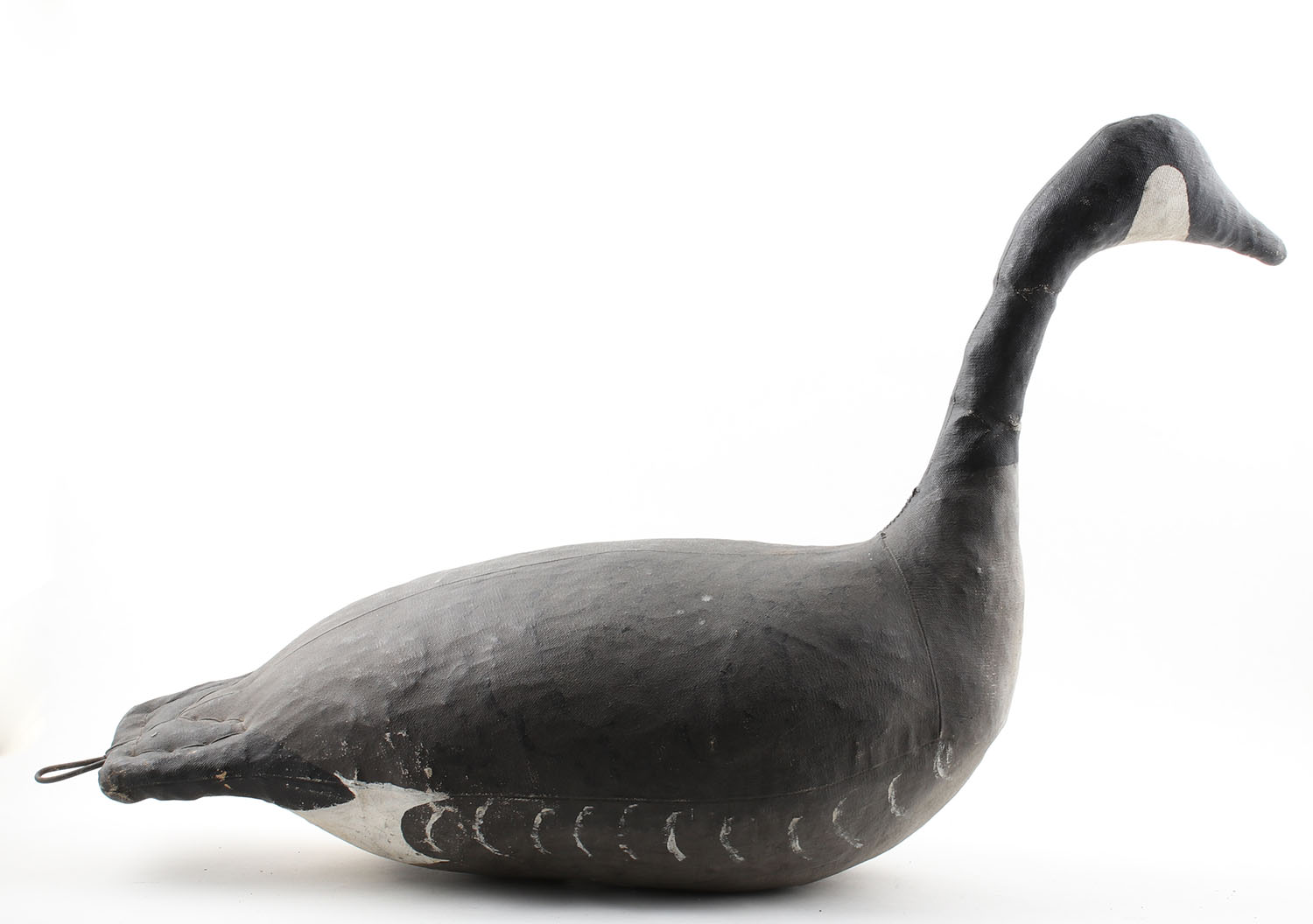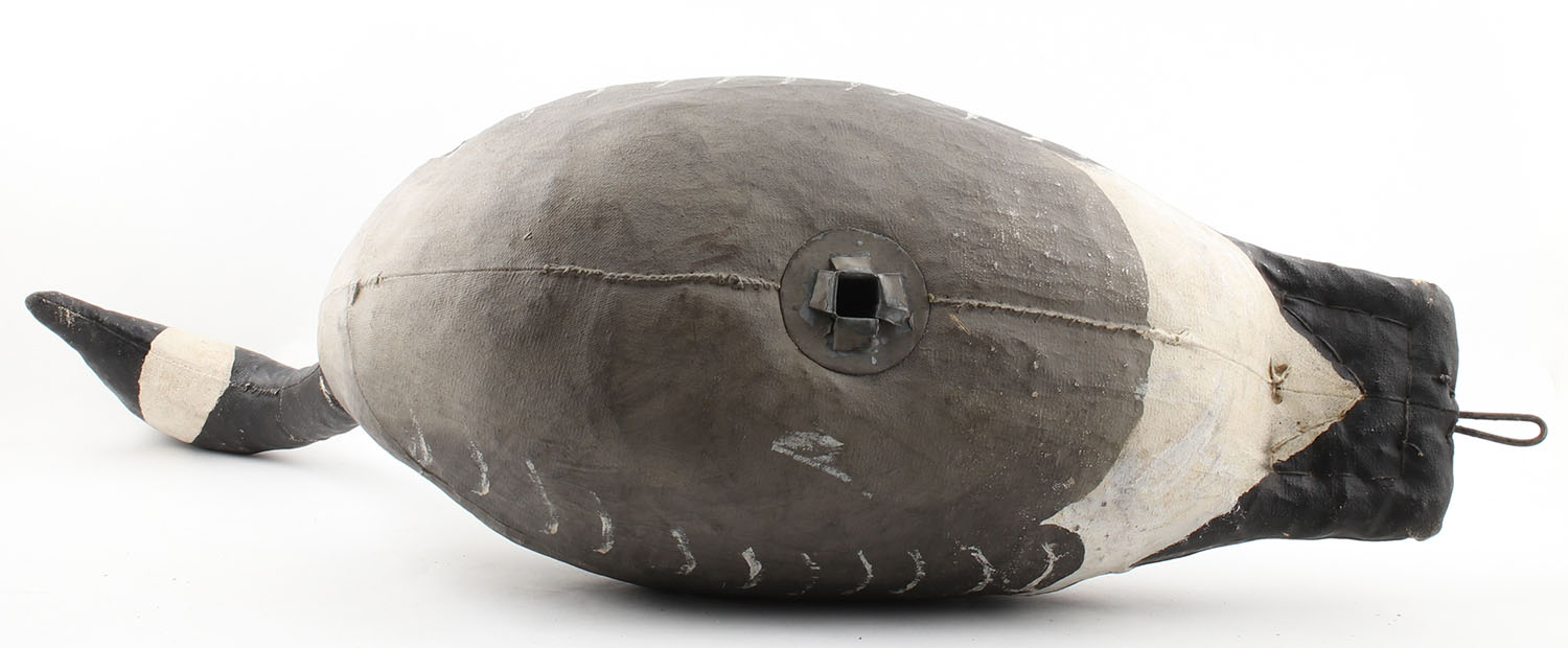 Canada Goose by Unknown Maker, no eyes, canvas, original paint, structurally sound, 28'' x 20'', has hole in bottom for stand. Grade: Excellent - Value: 20 to 60