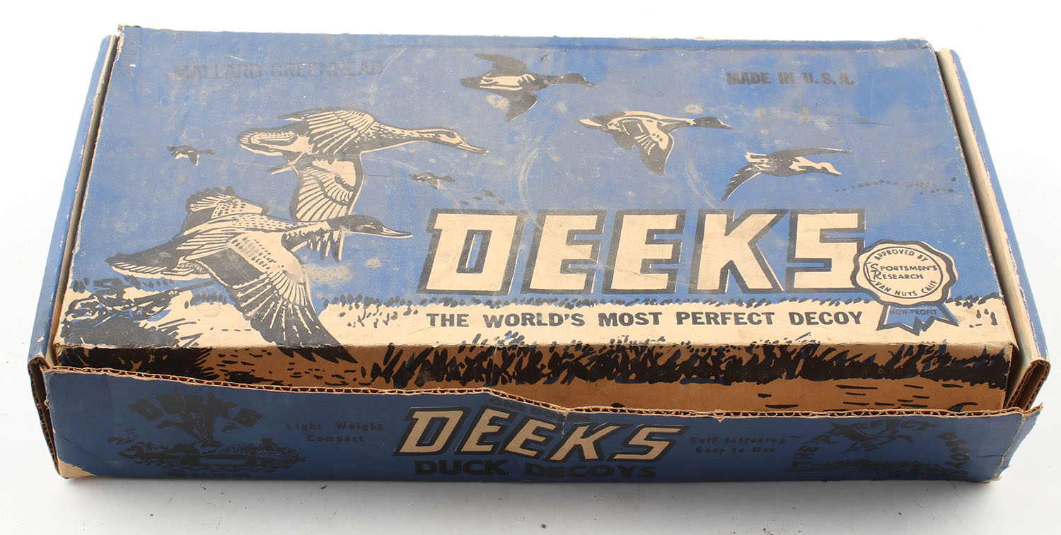 Mallard Decoys by Deeks, 6 rubber decoys & weighted rings, comes in original box with instructions. Grade: Very Good - Value: 10 to 50
