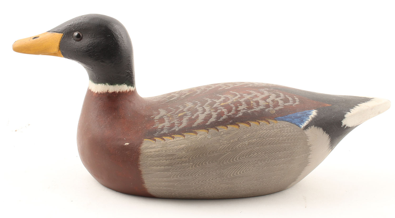 Miniature Mallard Drake by Betty Baldwin, 1986, glass eyes, sold wood, original paint, structurally excellent, signed on bottom, 10'' OAL - Value: 10 to 50