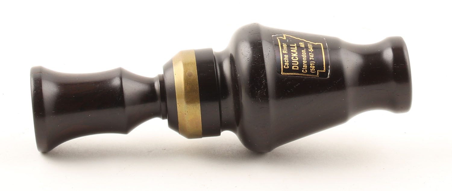 Grover Knoll Cache River Duckall Duck Call, Clarendon, AR, 1996, marked on barrel, plastic reed, 5'' OAL. Grade: Excellent - Value: 150 to 300