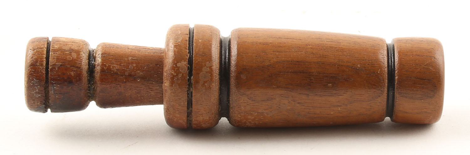 Unmarked Goose Call, no markings, plastic reed, appears to be some heat damage to one side, 5'' OAL. Grade: Fair - Value: 4 to 20