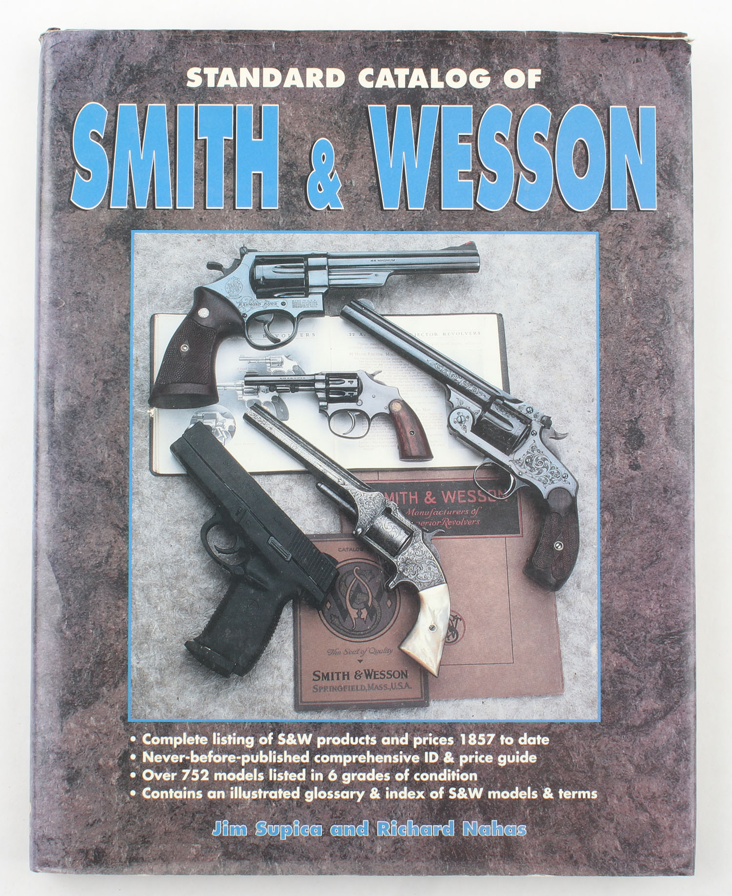 Standard Catalog of Smith & Wesson 1996, 8 1/2'' x 11''. 237 pages, pages clean, binding tight, hardcover and dustjacket very good with some rips. Value: $80 Grade: Very Good + - Value: 4 to 80