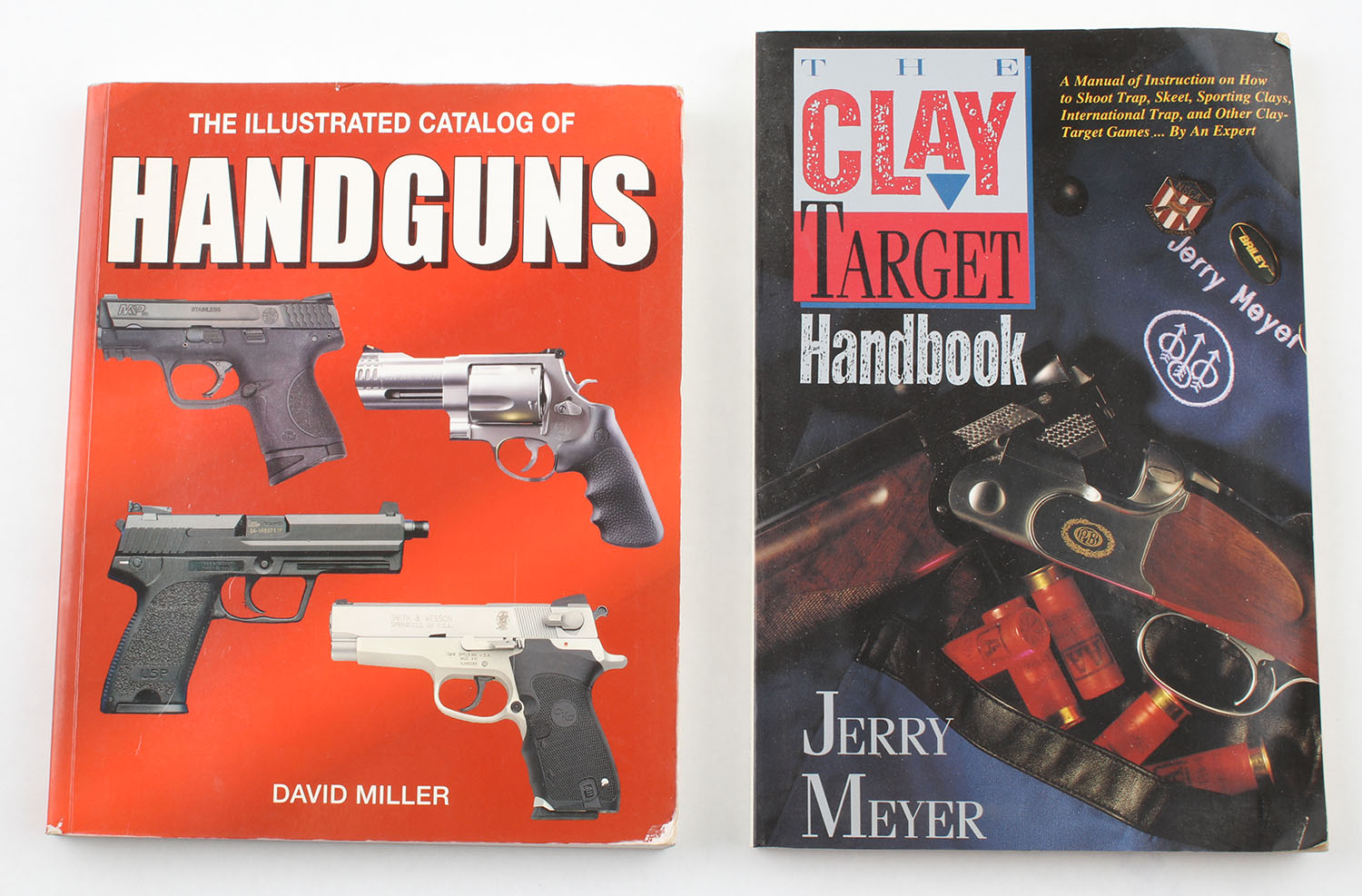 Lot of 2 (1) The Illustrated Catalog of Handguns by David Miller (1) The Clay Target Handbook by Jerry Meyer. Both softcovers, pages clean, bindings tight. Grade: Very Good ++ - Value: 2 to 60