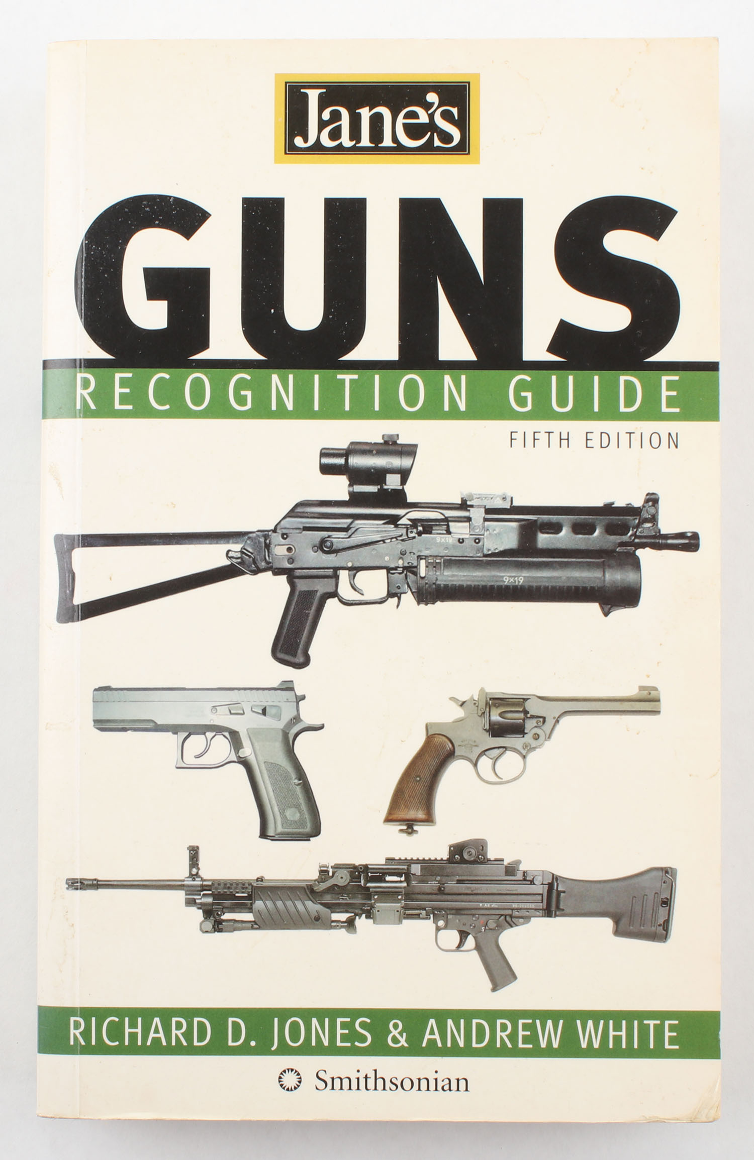 Jane's Guns: Recognition Guide, Fifth Edition by Richard D. Jones & Andrew White 2008, 4 1/2'' x 7 1/2''. 464 pages, pages clean, binding tight, softcover very good. Value: $1,000 Grade: Very Good + - Value: 2 to 200