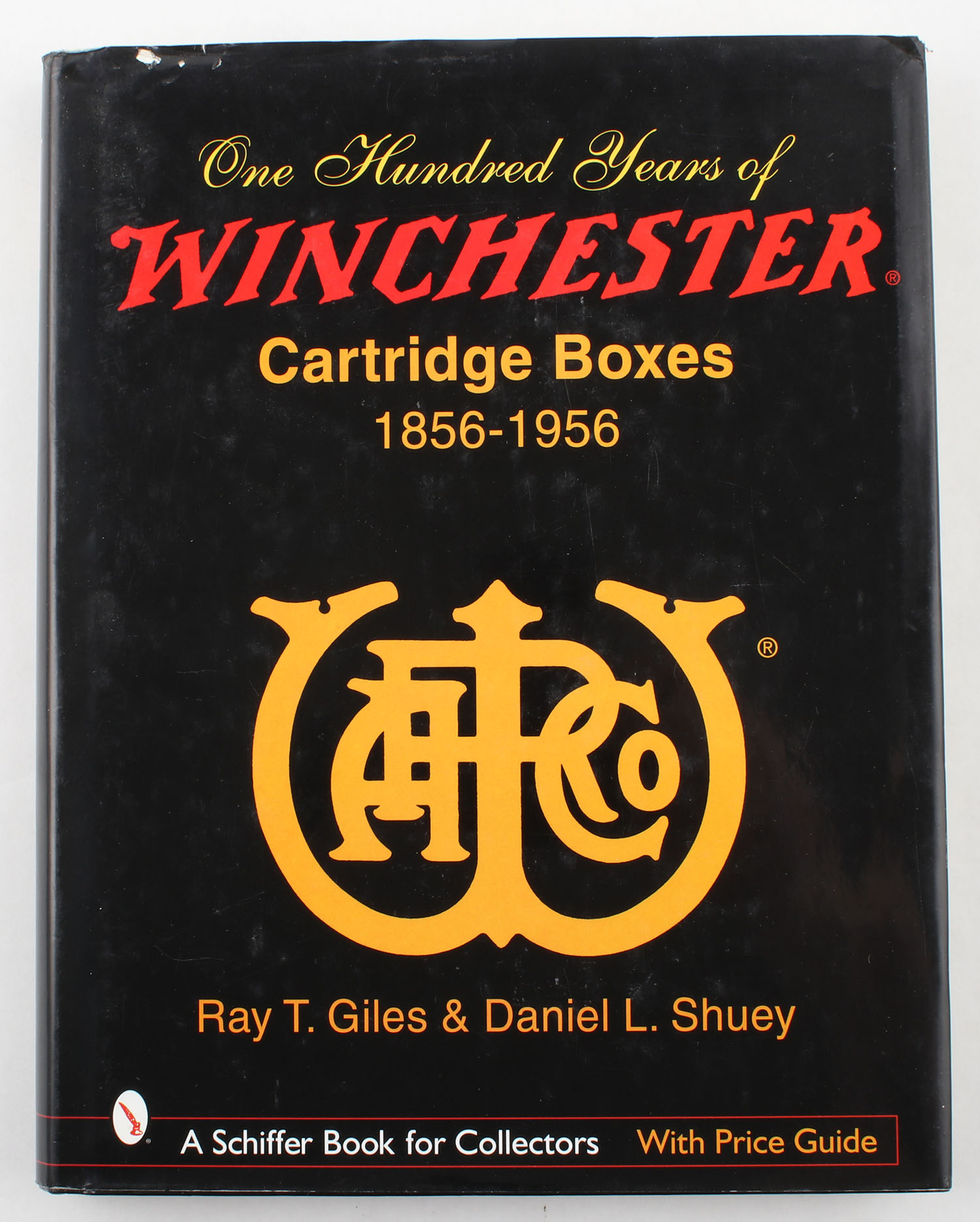 One Hundred Years of Winchester Cartridge Boxes: 1856-1956 (Schiffer Book for Collectors with Price Guide) 2006 by Daniel L. Shuey & Ray T. Giles, 8 1/2'' x 11'' 312 pages, pages clean, binding tight, hardcover and dustjacket excellent, colored images. Value: $130 Grade: Excellent ++ - Value: 30 to 150