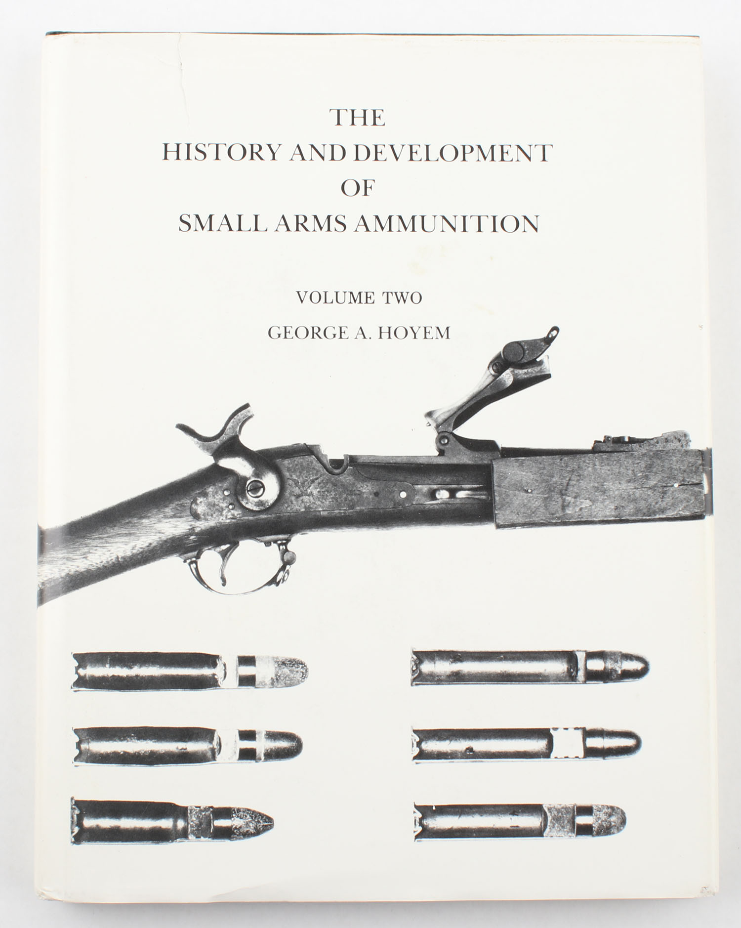 The History And Development Of Small Arms Ammunition Volume Two by George A. Hoyem, 1982, 263 of 500 signed copy, 9'' x 11 1/2'', 303 pages, pages clean, binding tight, b/w images, hardcover and dust jacket mint. Grade: Mint - Value: 50 to 200