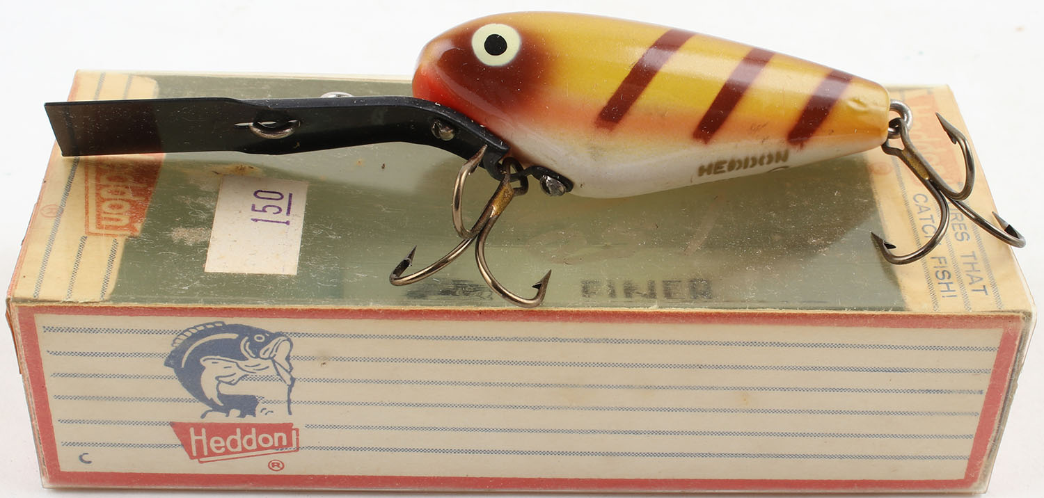 Heddon Deep-6 in the original box, PE, brown & yellow, 2 hooks. Grade: Excellent - Value: 8 to 20