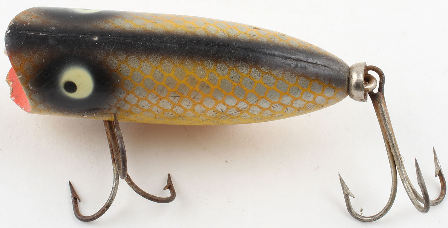 | Heddon Baby Lucky 13, wood lure, PE, yellow with silver scales ...