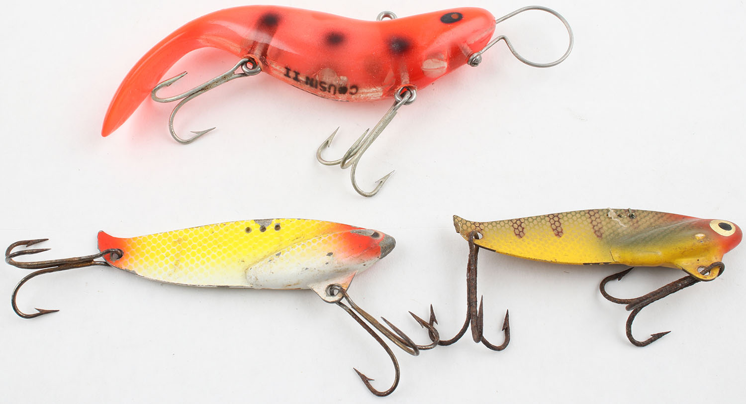 Lot of 3 Heddon Lures, ( (1) Cousin II, (2) Sonar 433). Grade: Very Good + - Value: 4 to 40
