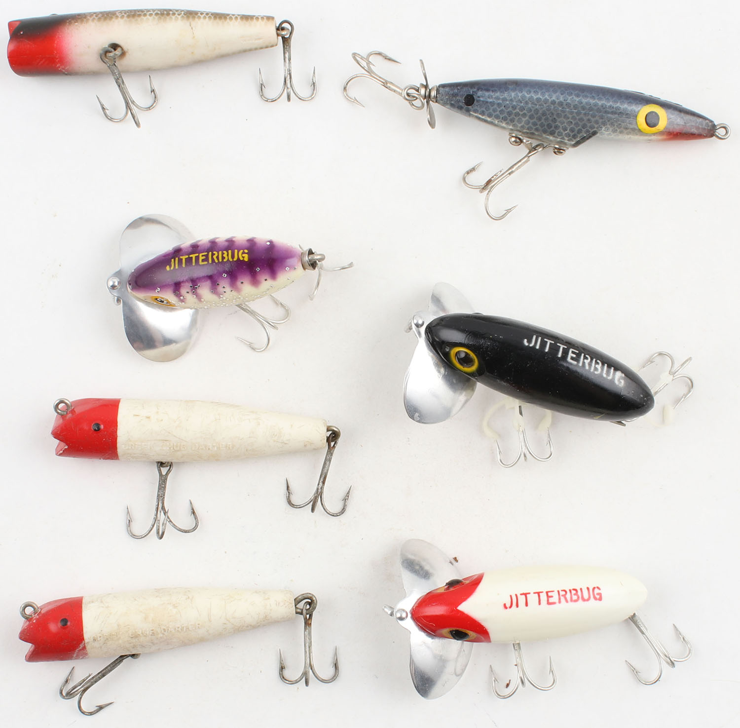Lot of 7 Fishing Lures, similar styles, different sizes. Grade: Very Good - Value: 10 to 40