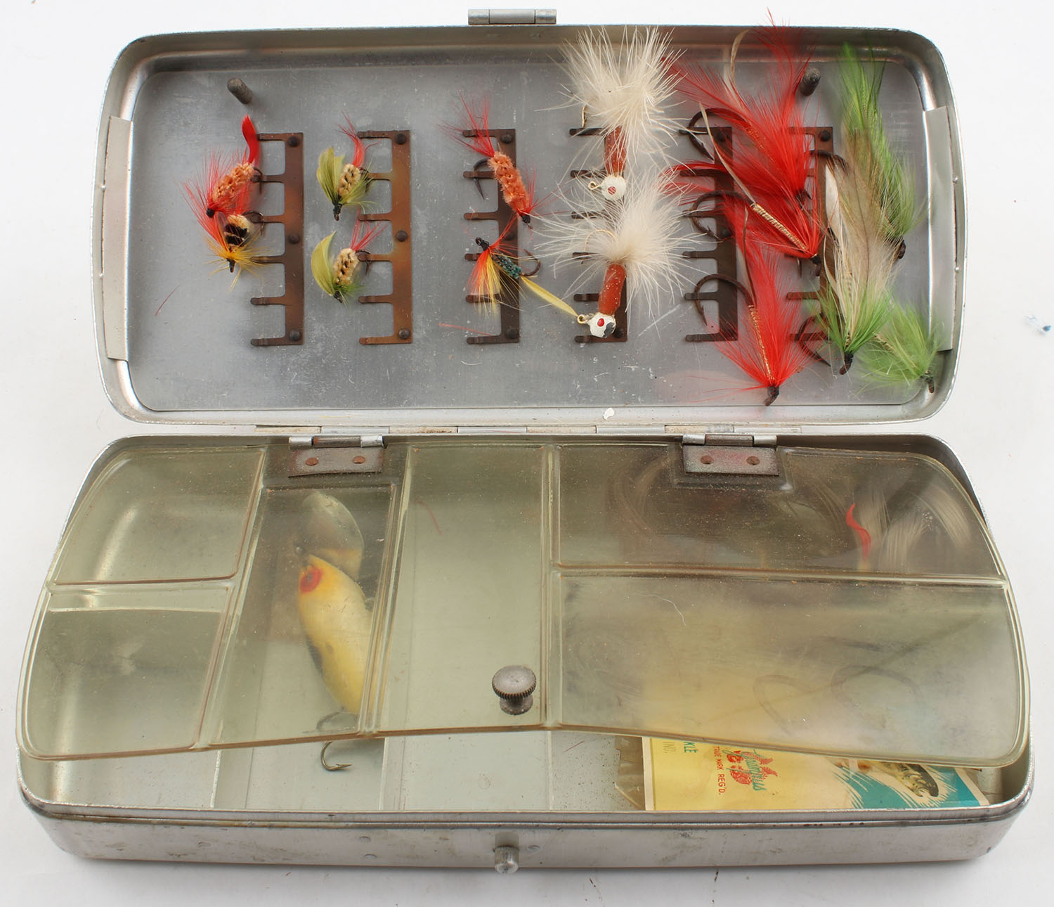 | Small tackle box with fly fishing flies, line, hooks & one lure...