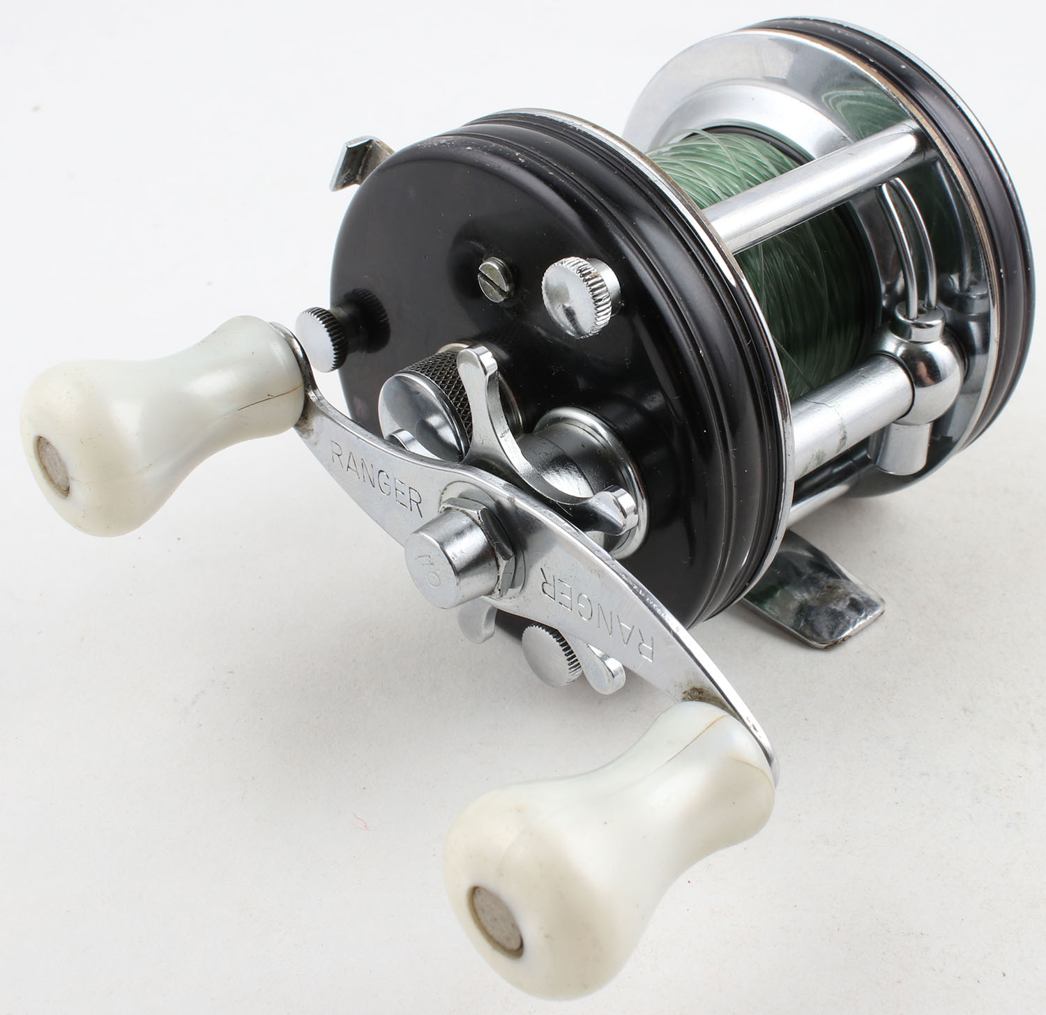 Abu Sweden, Ambassador 5000 C, no yardage mark, dual handle, handle marked ''RANGER'', smooth turn, no audible clicks. Grade: Very Good - Value: 10 to 50