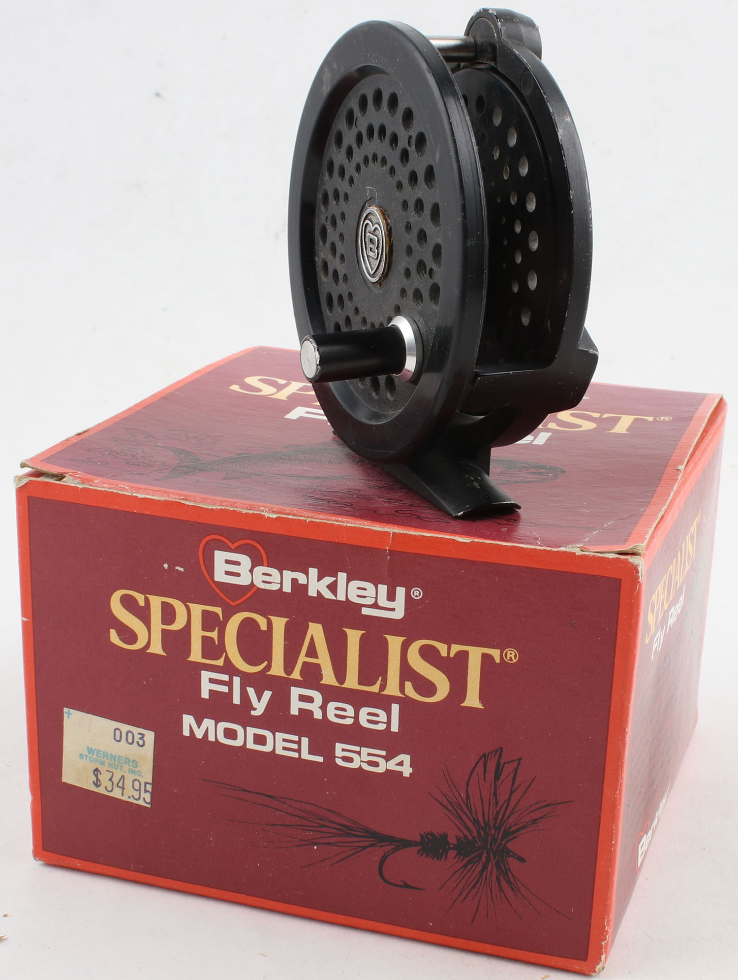 Berkley Specialist Model 554, single handle, marked on reel seat, smooth turn & strong clicks, comes in factory box. Grade: Very Good + - Value: 8 to 40