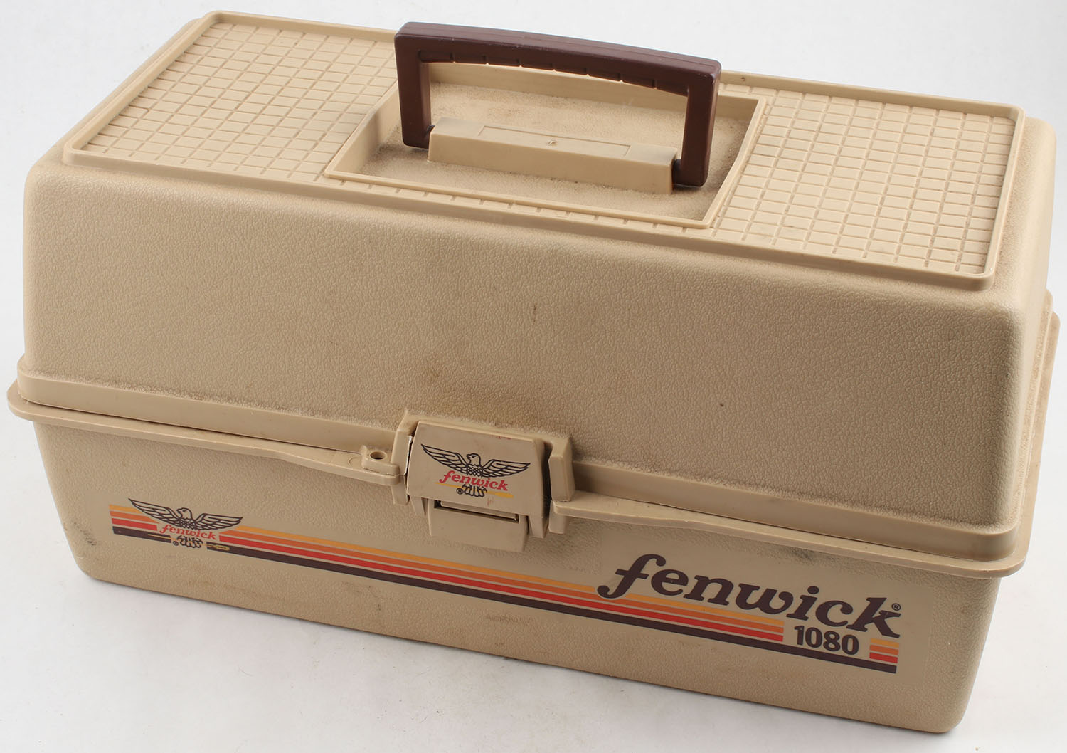 Fenwick 1080 Tackle box, plastic tackle box, with an assortment of fishing tackle. Grade: Very Good - Value: 10 to 50
