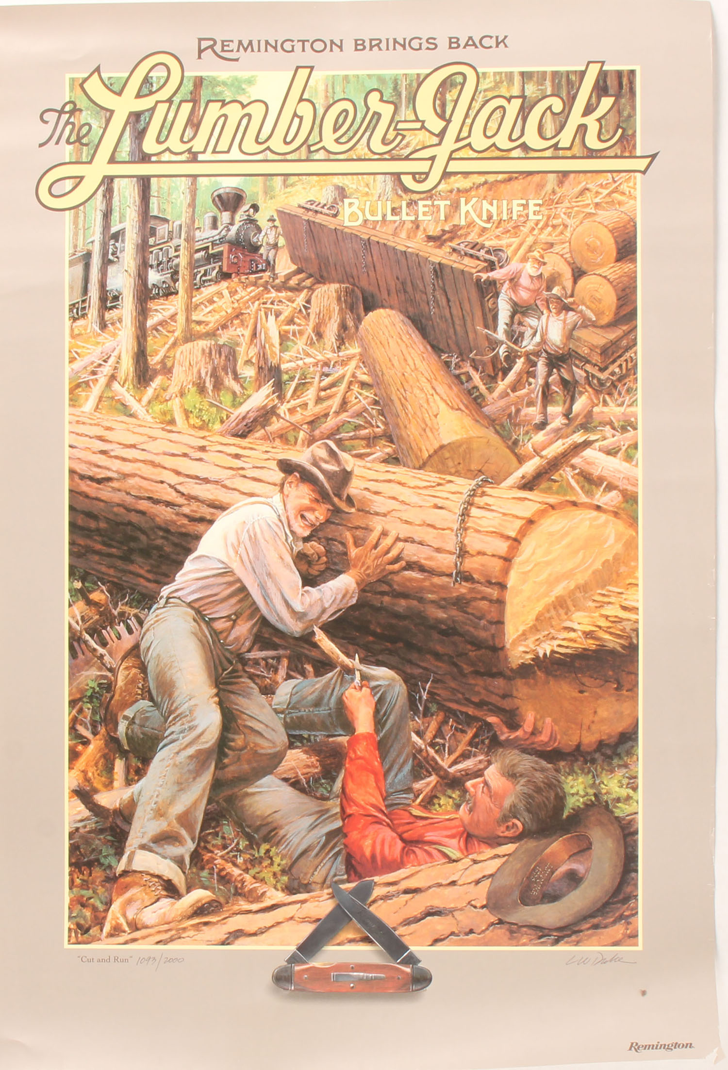 Remington ''THE LUMBERJACK'' Knife Poster, 1986, few small rips along the edges. Grade: Excellent - Value: 20 to 60