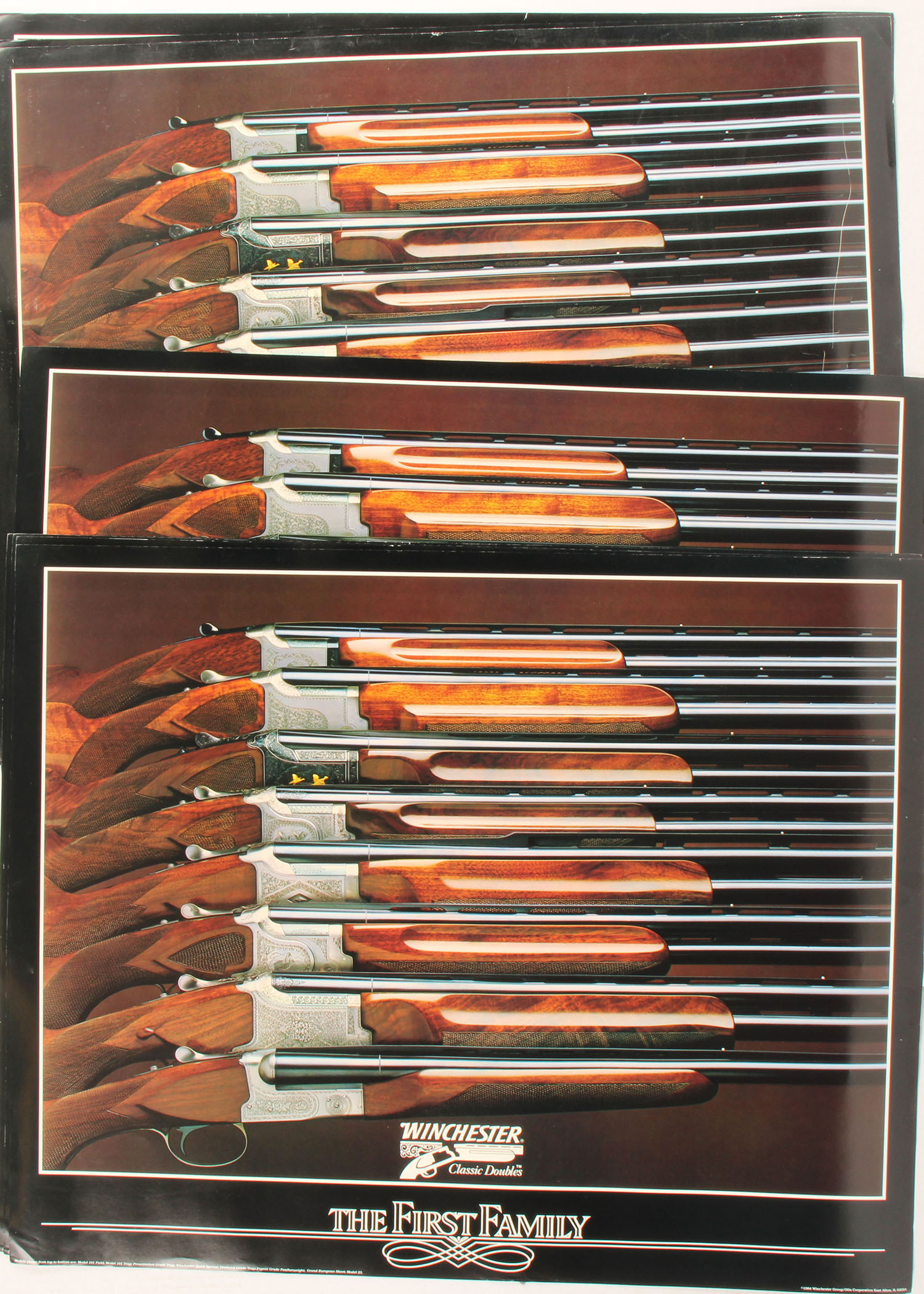 Lot of 10 Winchester Classic Doubles posters, pictures some very nice engraved O/U & double shotguns, 24'' x 29''. Grade: Excellent - Value: 10 to 30
