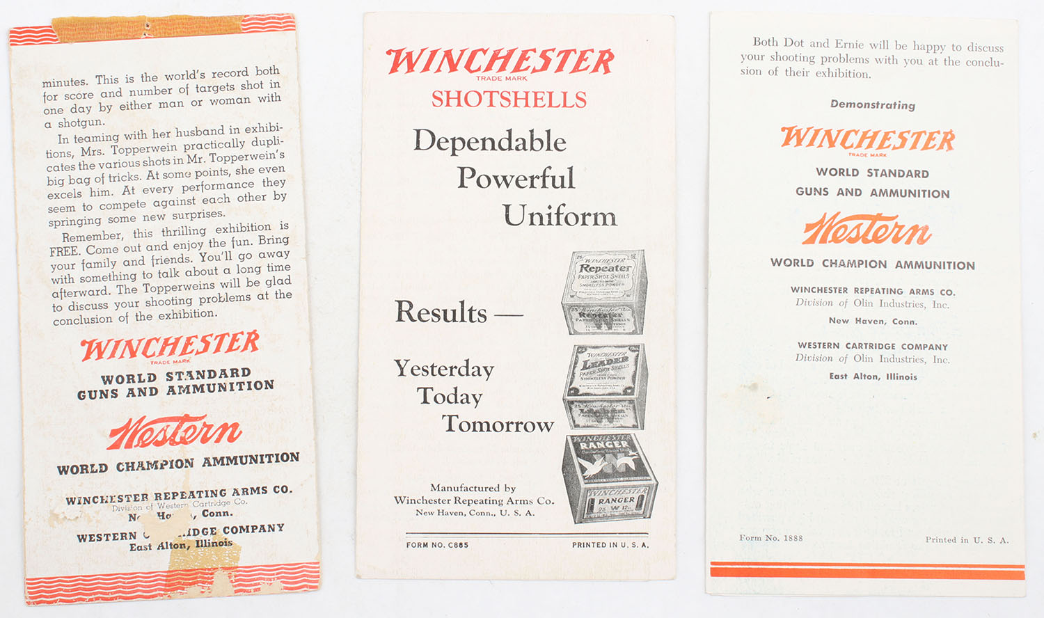 Lot of 3 Winchester - Western Brochures. Grade: Excellent - Value: 10 to 50