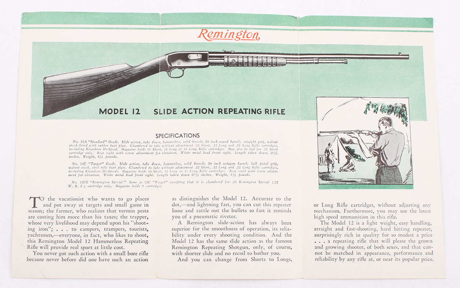 Remington Model 12 Repeater Brochure. Grade: Very Good ++ - Value: 10 to 50