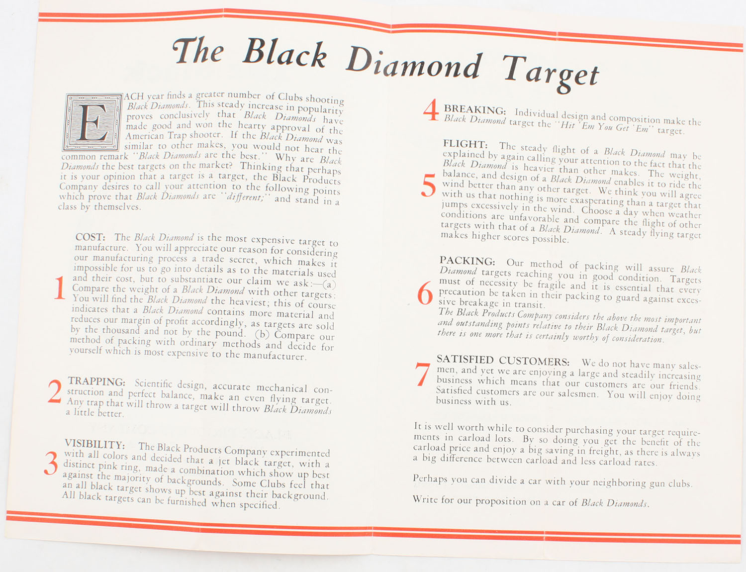 Black Products Company ''THE BLACK DIAMOND TARGET'' Brochure. Grade: Excellent - Value: 8 to 30