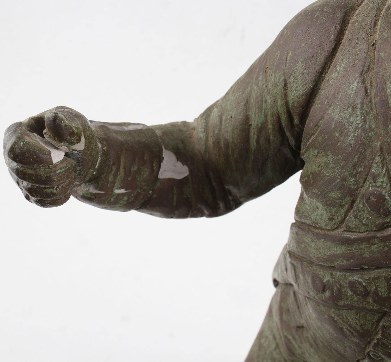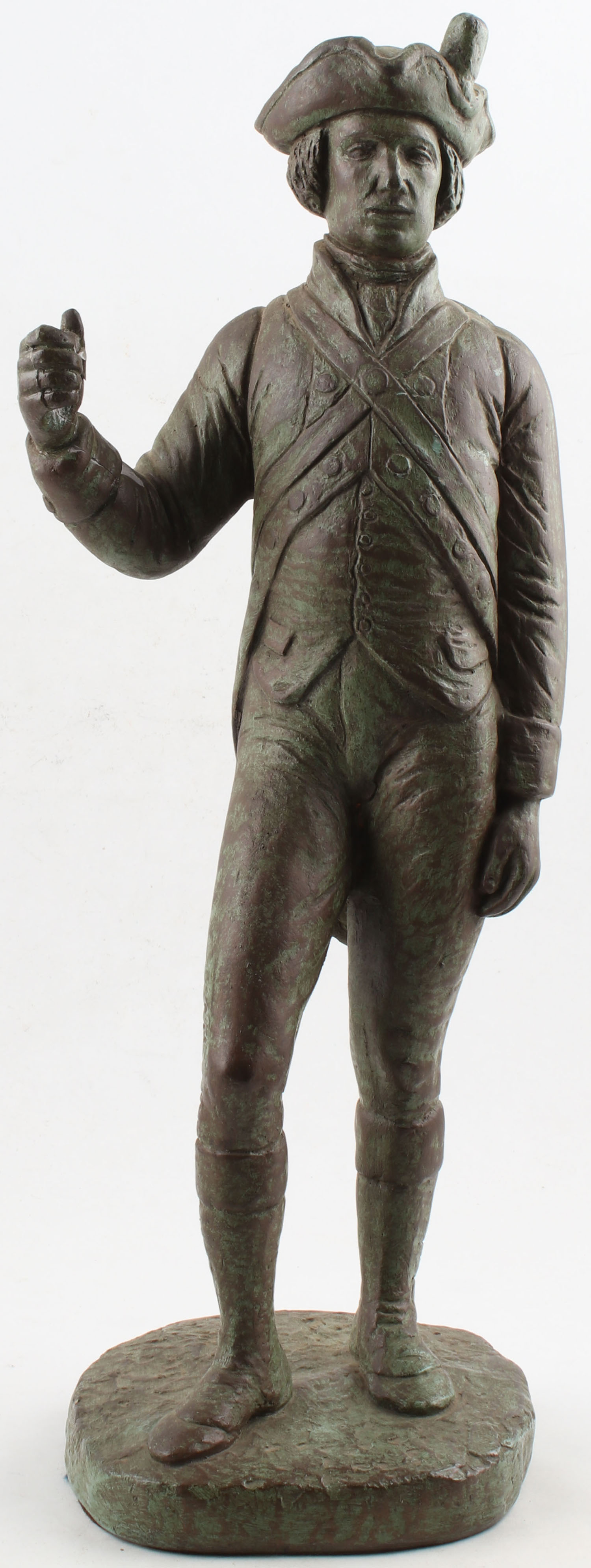 Vintage Austin Productions Revolutionary War era solider, made of ceramic or plaster, right arm/hand broken in a few spots, glue repaired, missing rifle. Grade: Fair - Value: 20 to 80