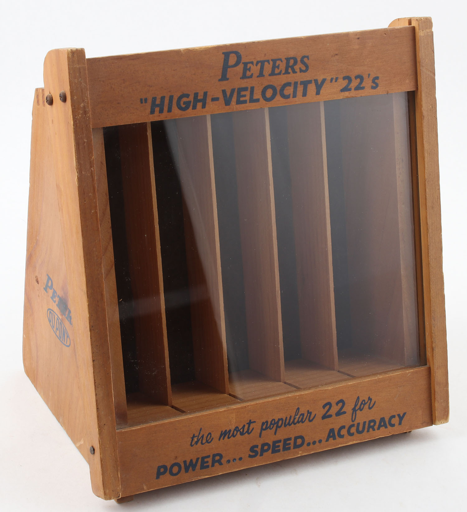 Peters High Velocity 22's display, wood has handling marks but still solid, lock functions, blue print has nice color. Grade: Excellent - Value: 250 to 500