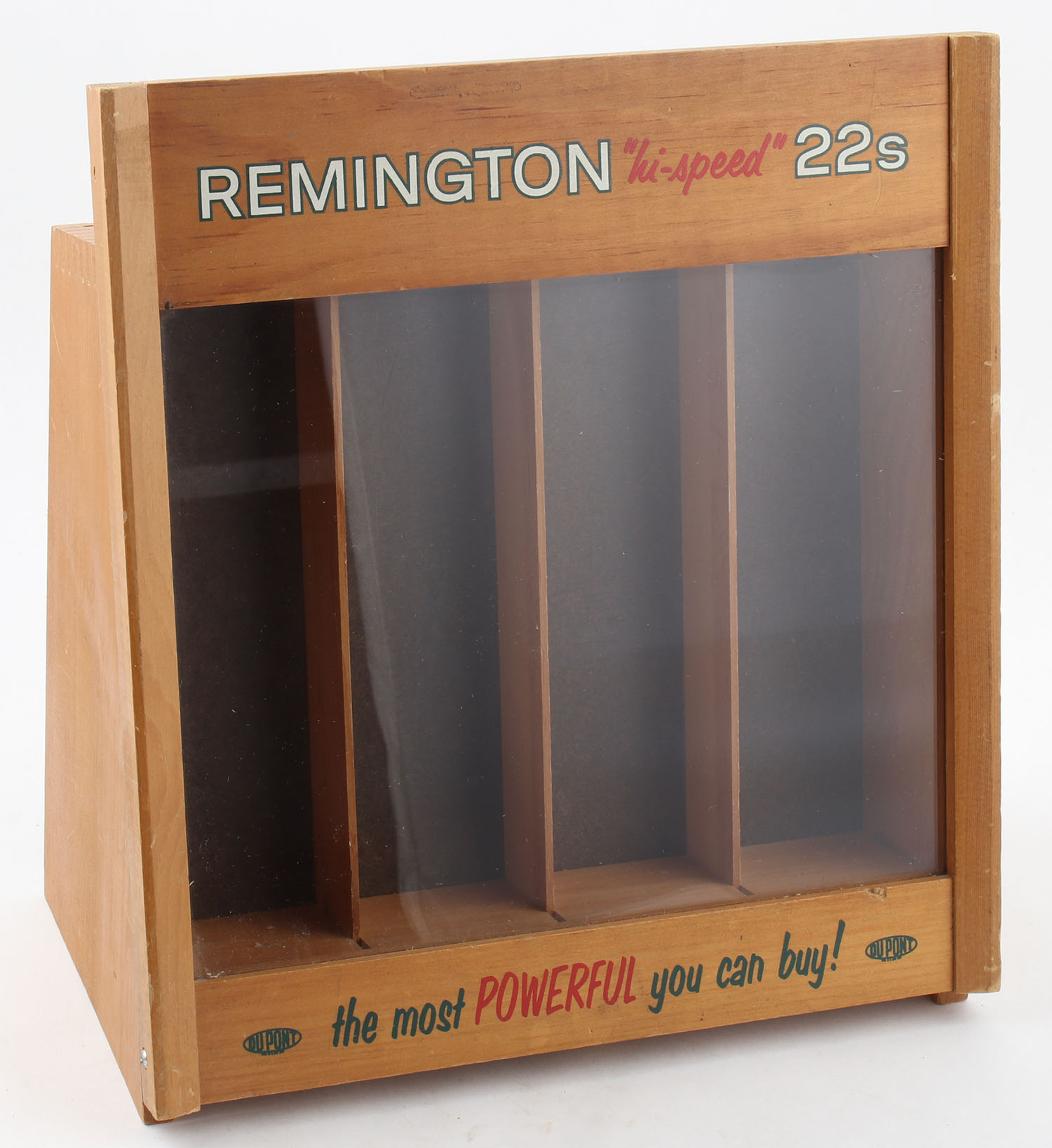 Remington HI-SPEED 22's display, wood is solid, wood lock piece functions, red, green and white print has nice color. Grade: Excellent ++ - Value: 300 to 600