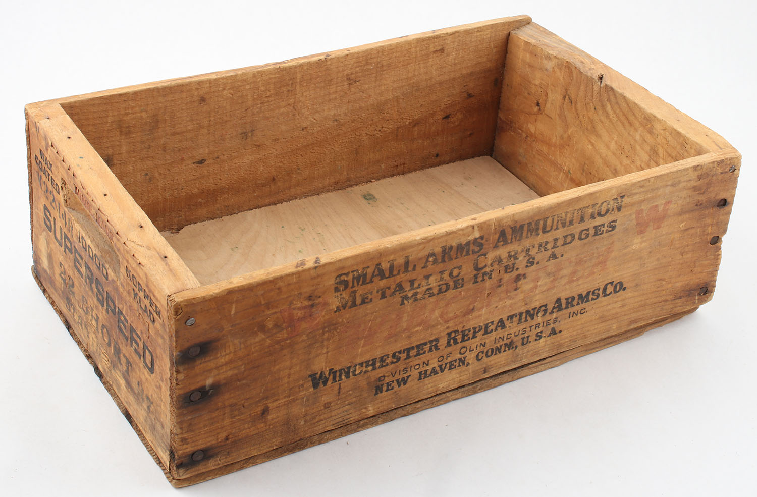 Winchester Superspeed 22 Short wood crate, black print is solid and crate has age soiling with scuffing. Grade: Very Good ++ - Value: 10 to 50