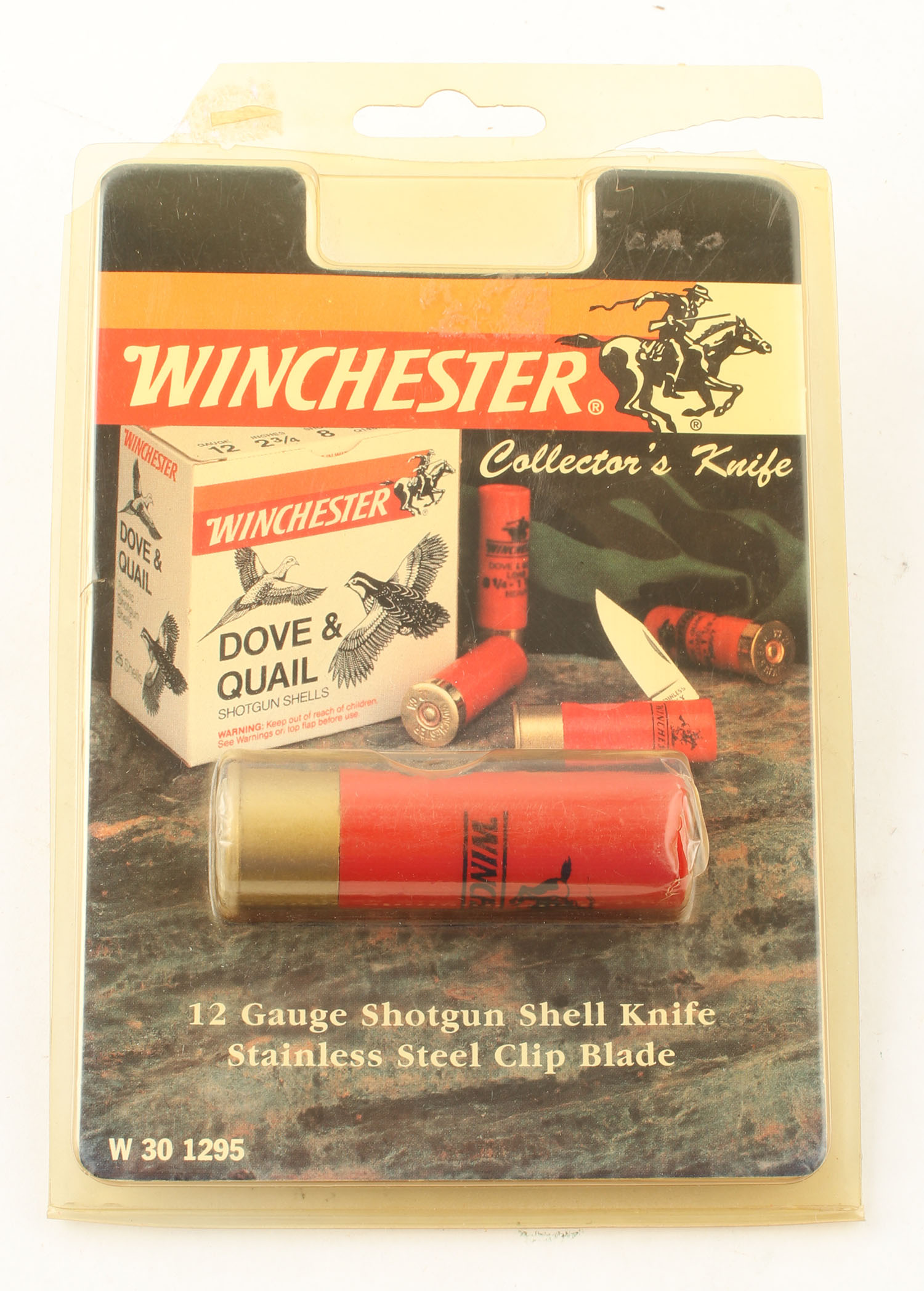 Winchester knife in shape of 12 ga shotshell, in original packaging. Grade: Excellent - Value: 10 to 40