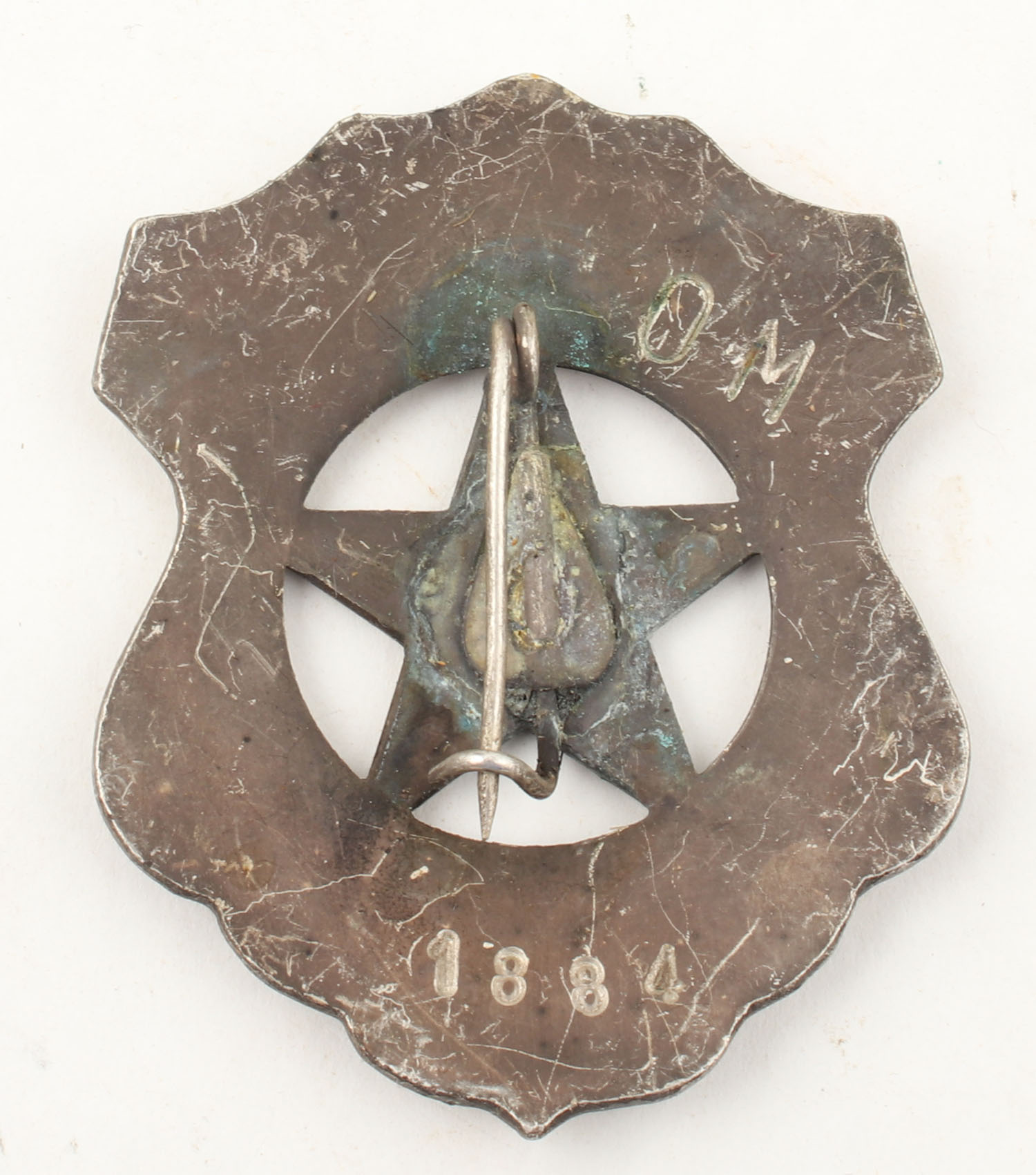 US Marshall badge, dated 1884 pinback. Grade: Very Good ++ - Value: 150 to 300