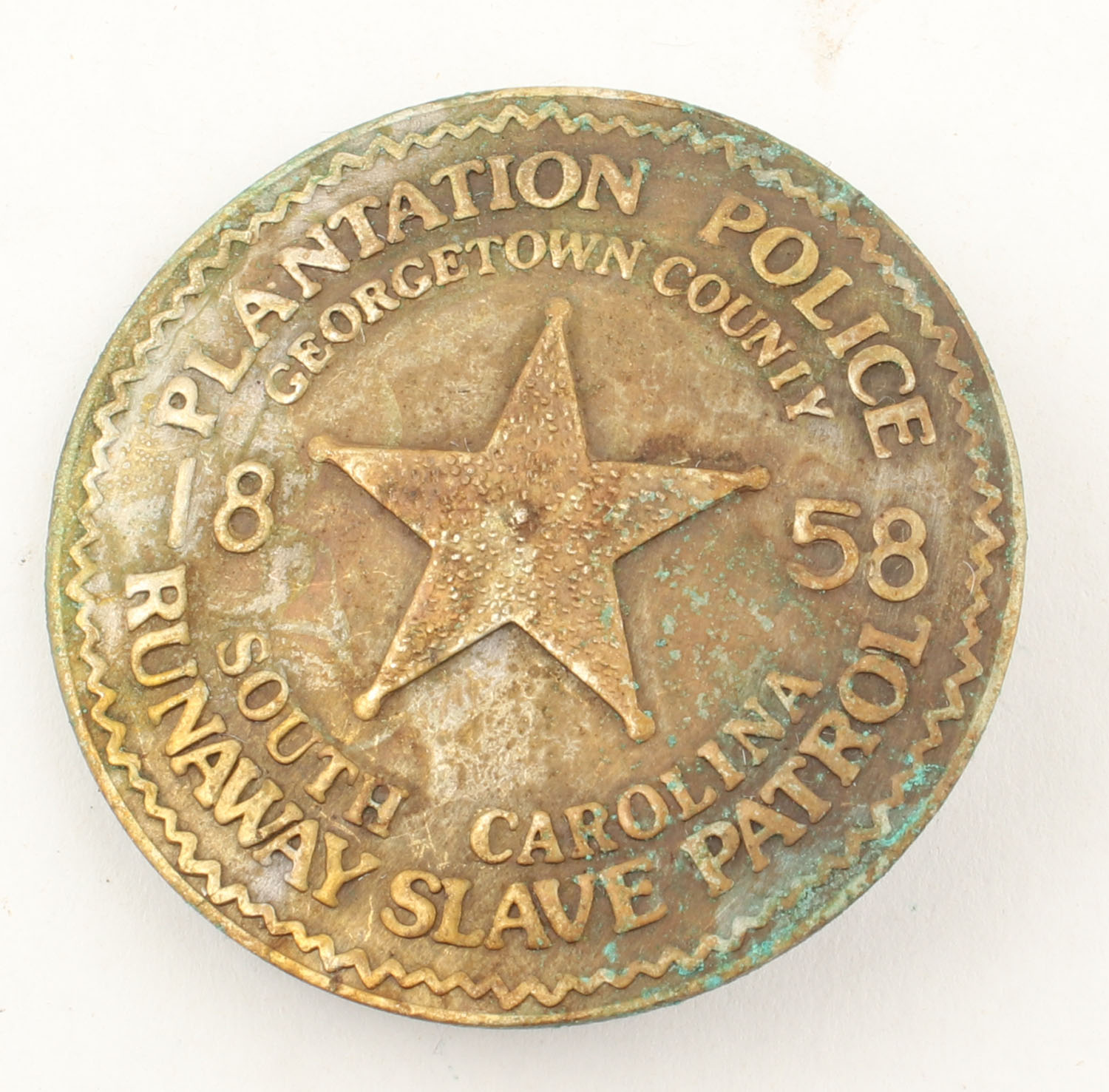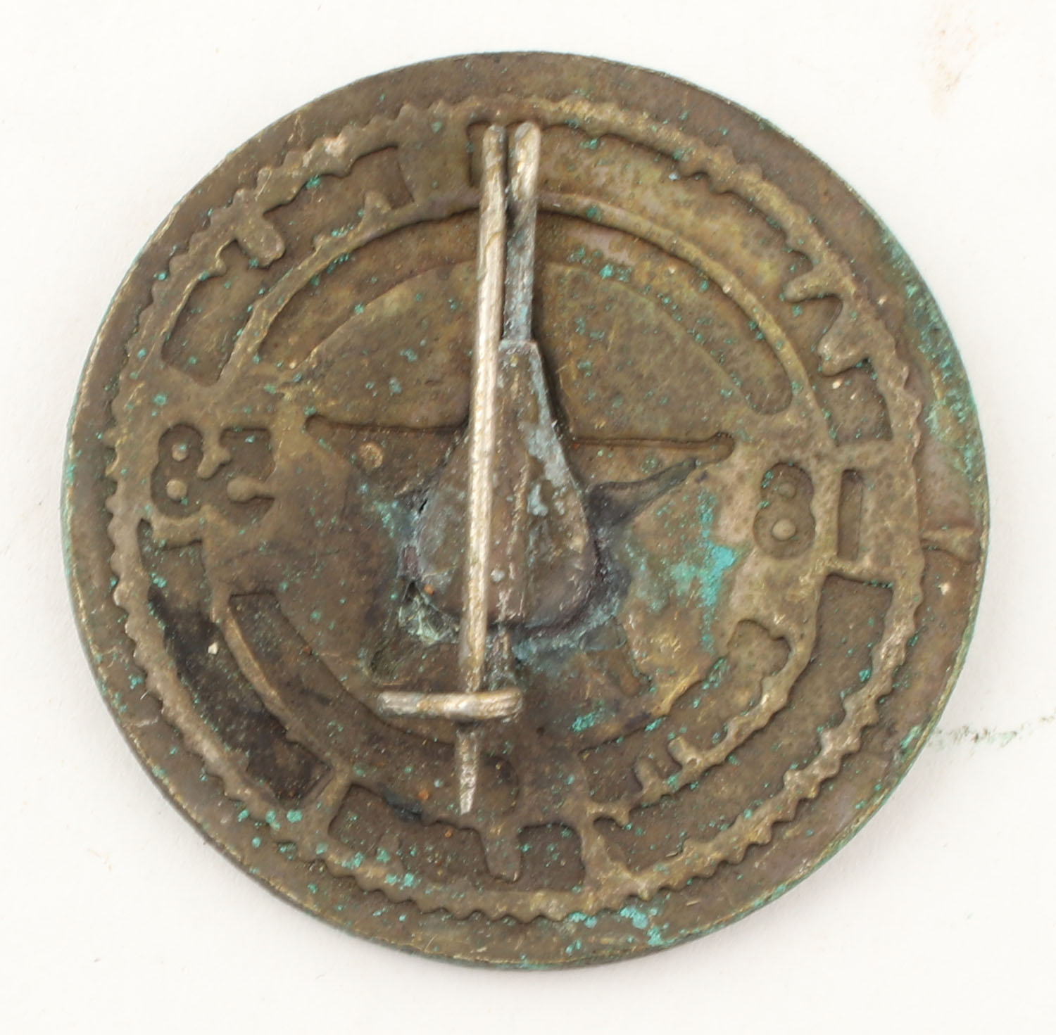 Plantain Police badge dated 1858, pinback. Grade: Very Good ++ - Value: 100 to 400