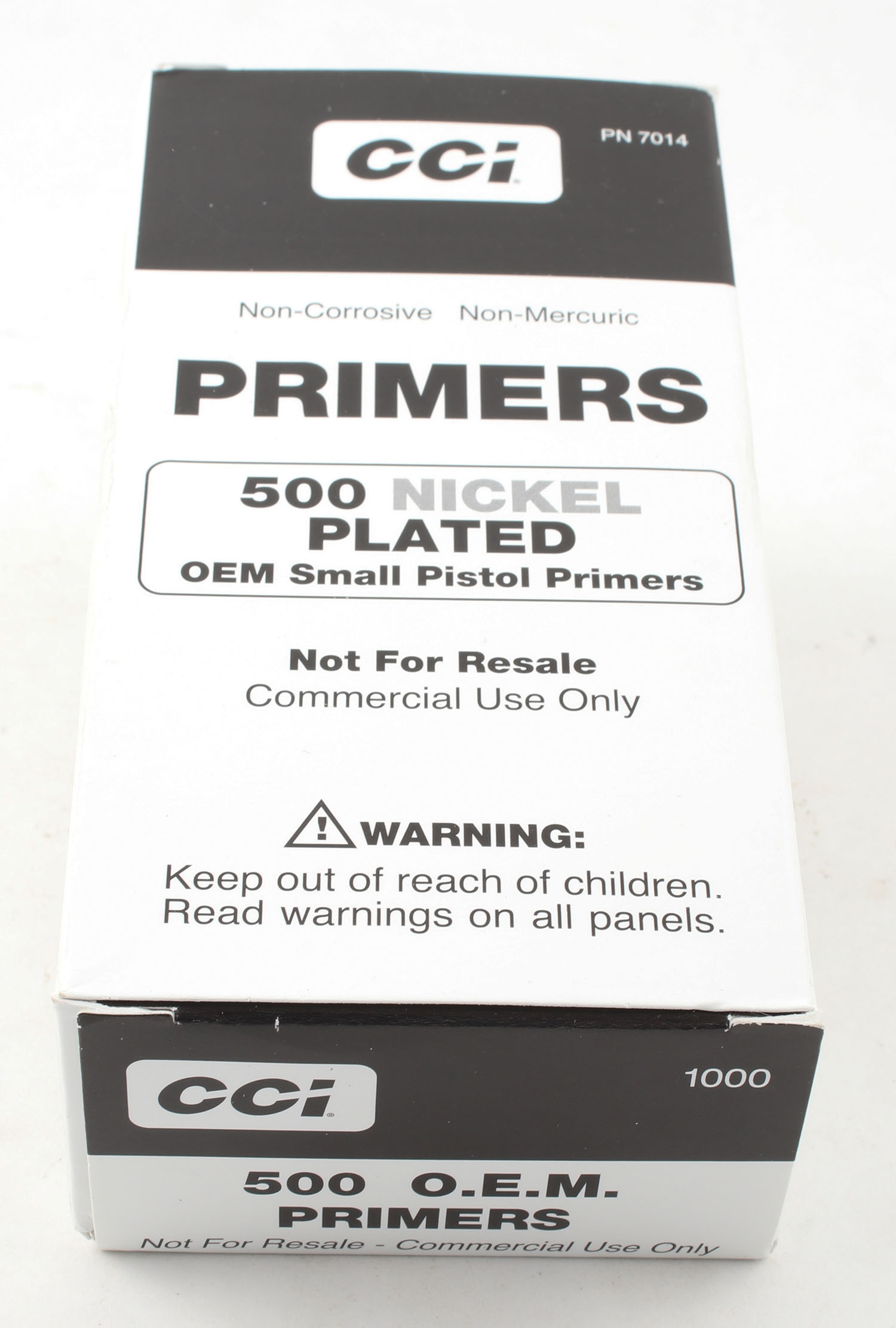 CCI Primers brick, 500 Nickel plated OEM Small Pistol Primers, FULL. Grade: Excellent ++ - Value: 30 to 90