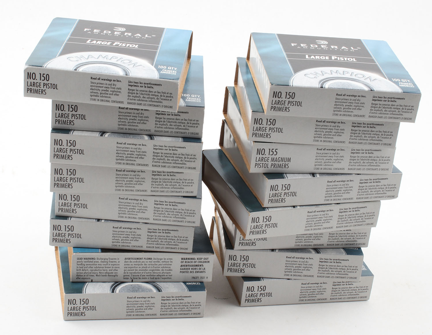 Lot of 16 Federal primer boxes, Large Pistol, FULL. Grade: Very Good ++ - Value: 50 to 100