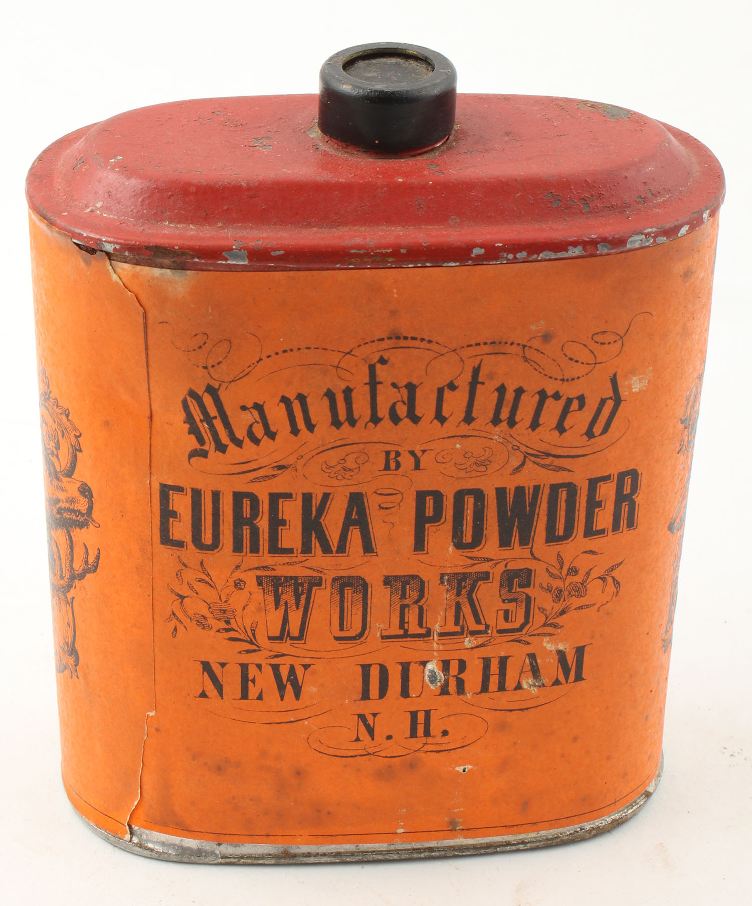 Eureka Powder Works Imperial Gunpowder tin, paper is bright and clean, tin has some scuffing. Grade: Excellent - Value: 50 to 200