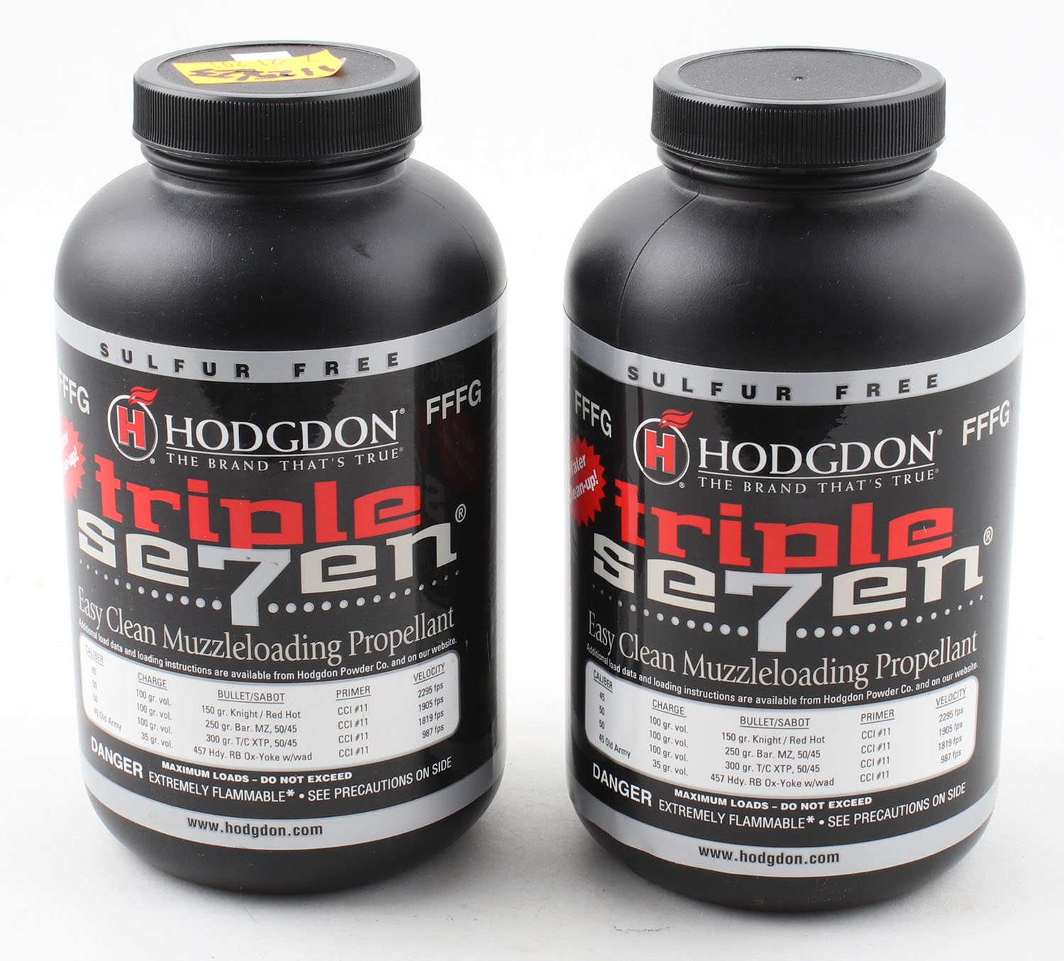 Lot of 2 Hodgdon Triple seven muzzleloading propellant, both nearly full. Grade: Excellent - Value: 30 to 90
