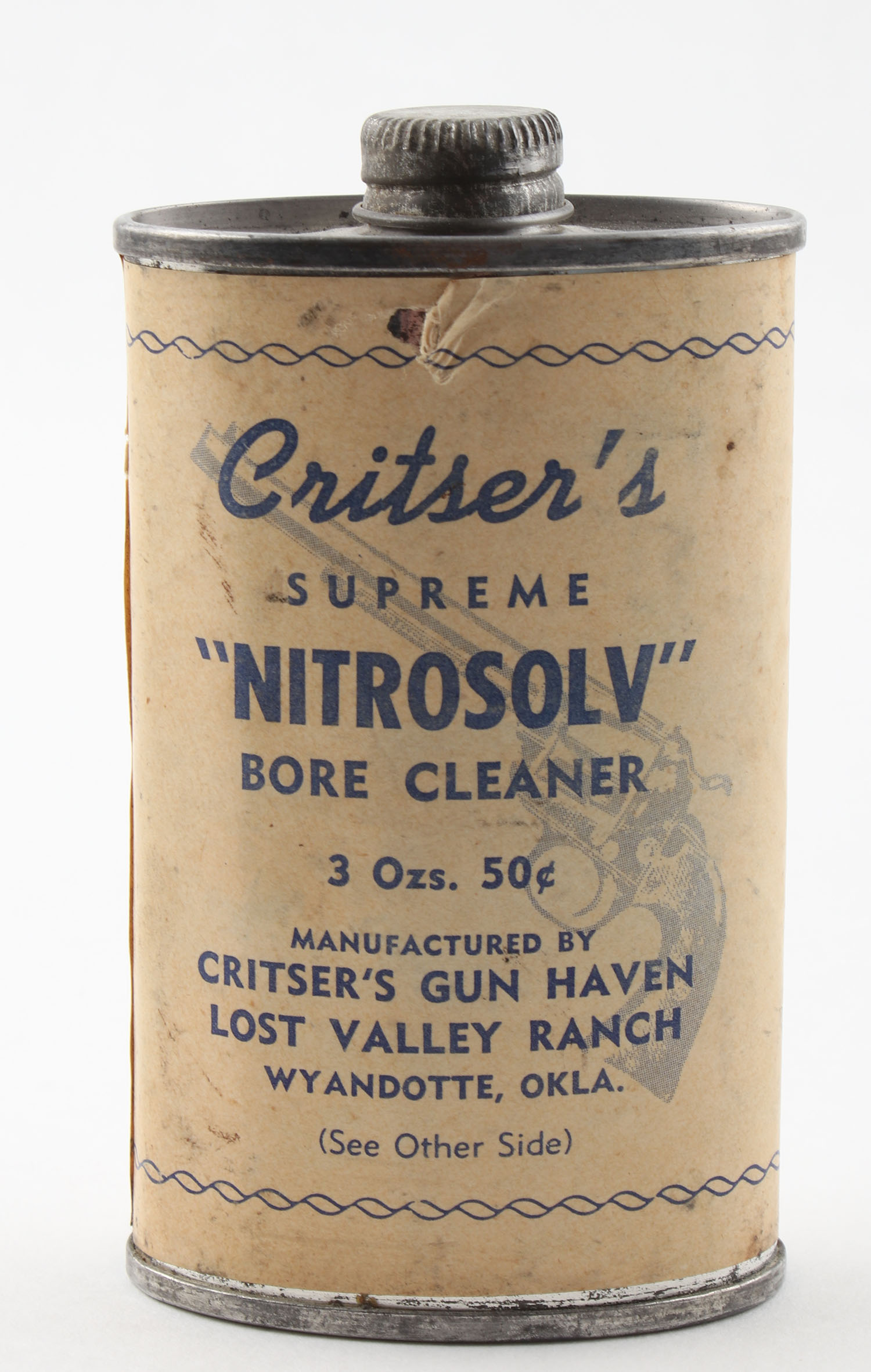 Critsers Nitrosolv oil tin, lead cap , empty, tin has great color. Grade: Excellent - Value: 20 to 80
