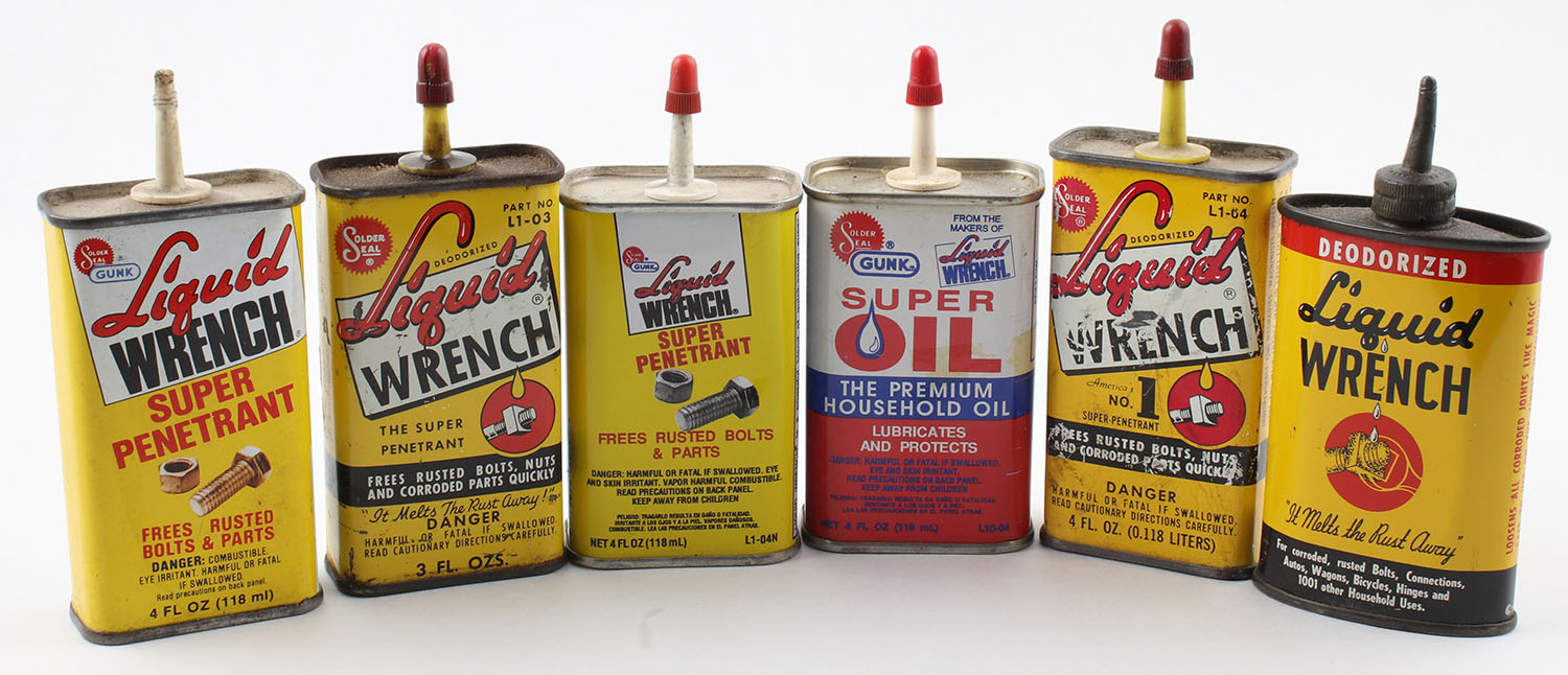 Lot of 6 oil tins, various manfs., all empty . Grade: Excellent - Value: 16 to 60