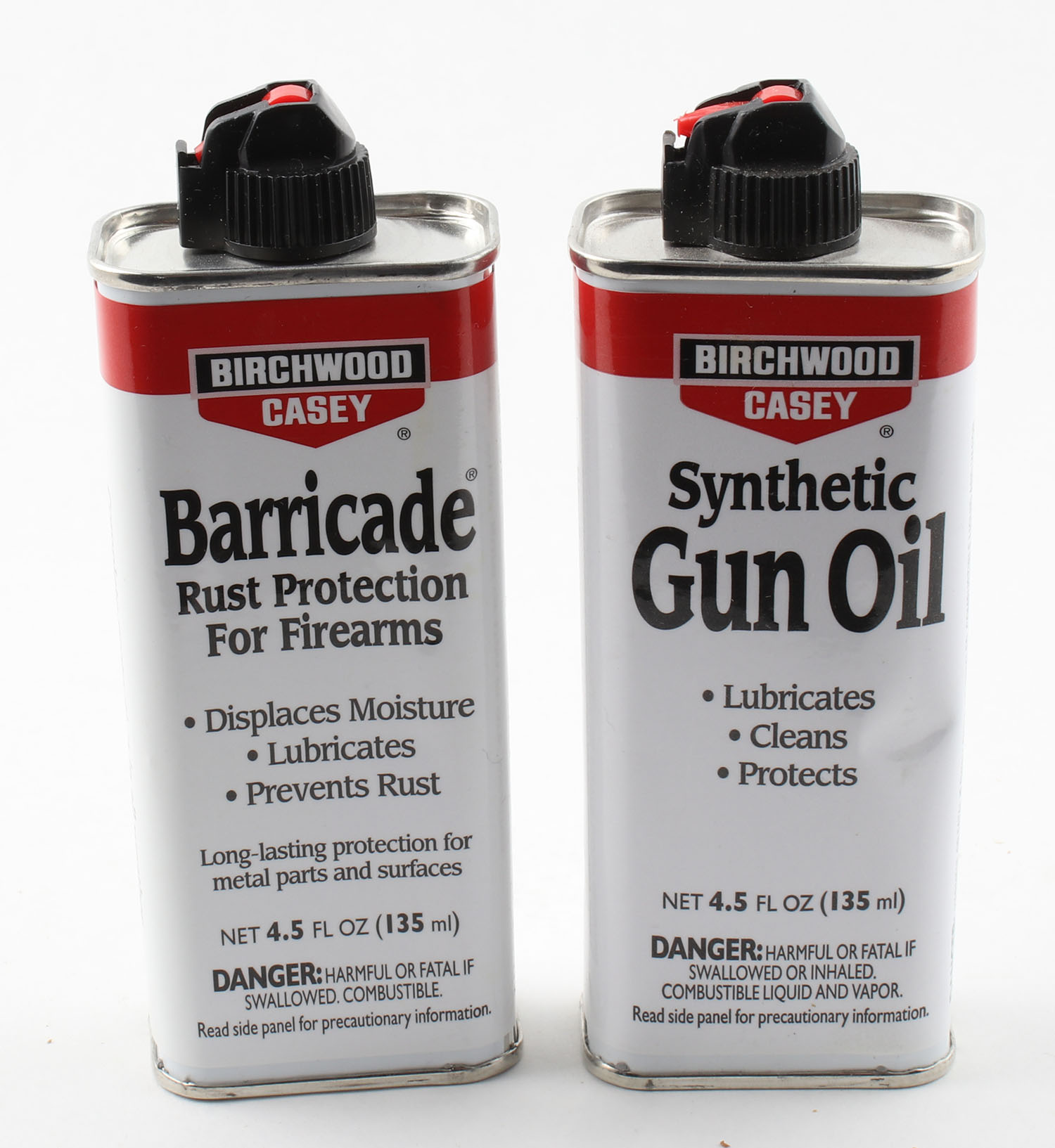 Lot of 2 Birchwood Casey oil tins, all partial . Grade: Excellent - Value: 10 to 40
