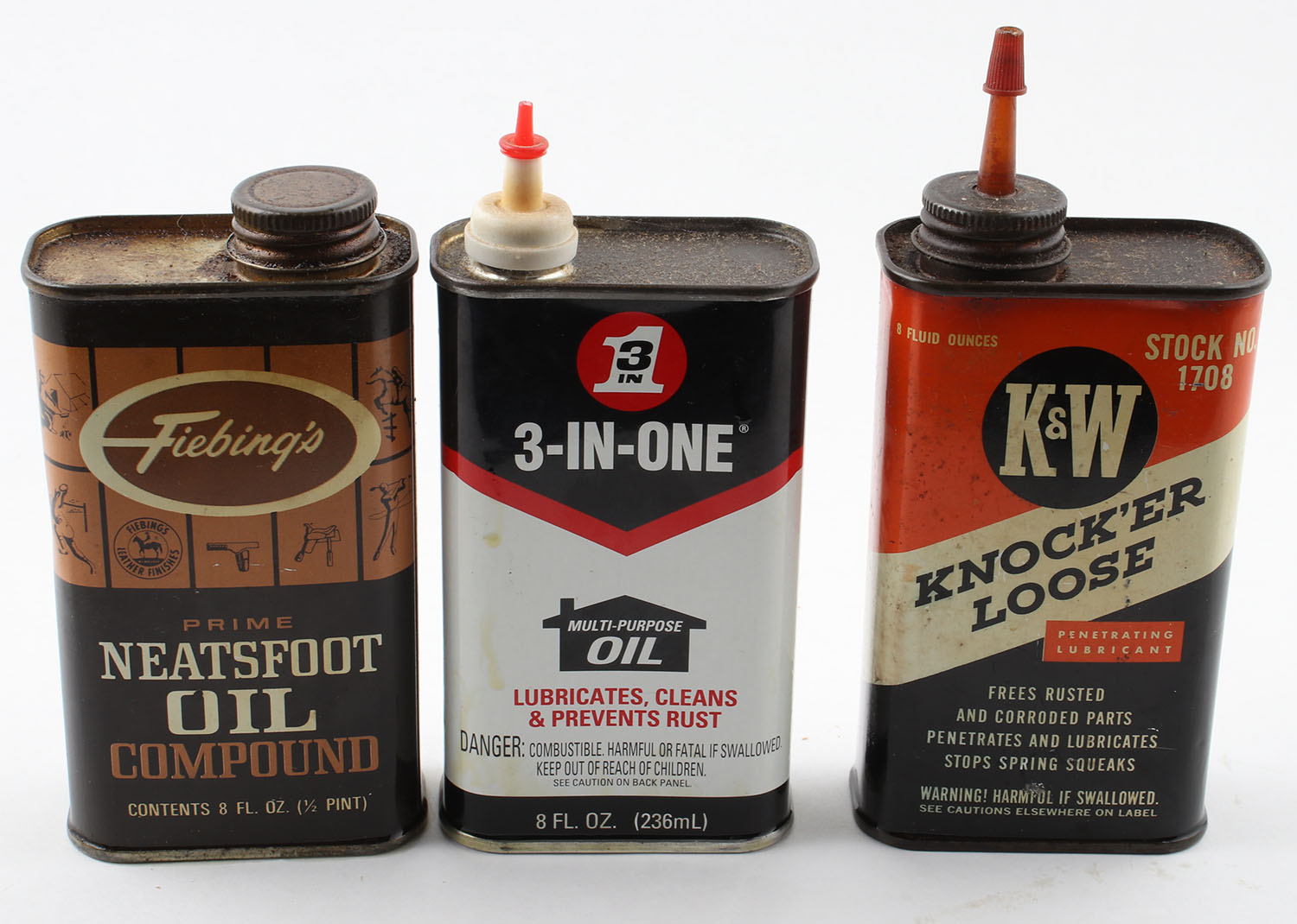 Lot of 3 Large oil tins, various manfs., all partial . Grade: Excellent - Value: 10 to 60