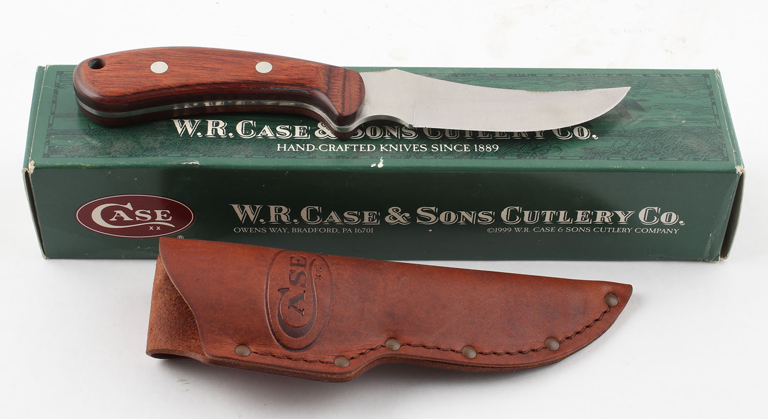 Case knife, 3 1/4'' blade, with leather sheath and cardboard box, Hunter Ridgeback. Grade: Excellent - Value: 20 to 60