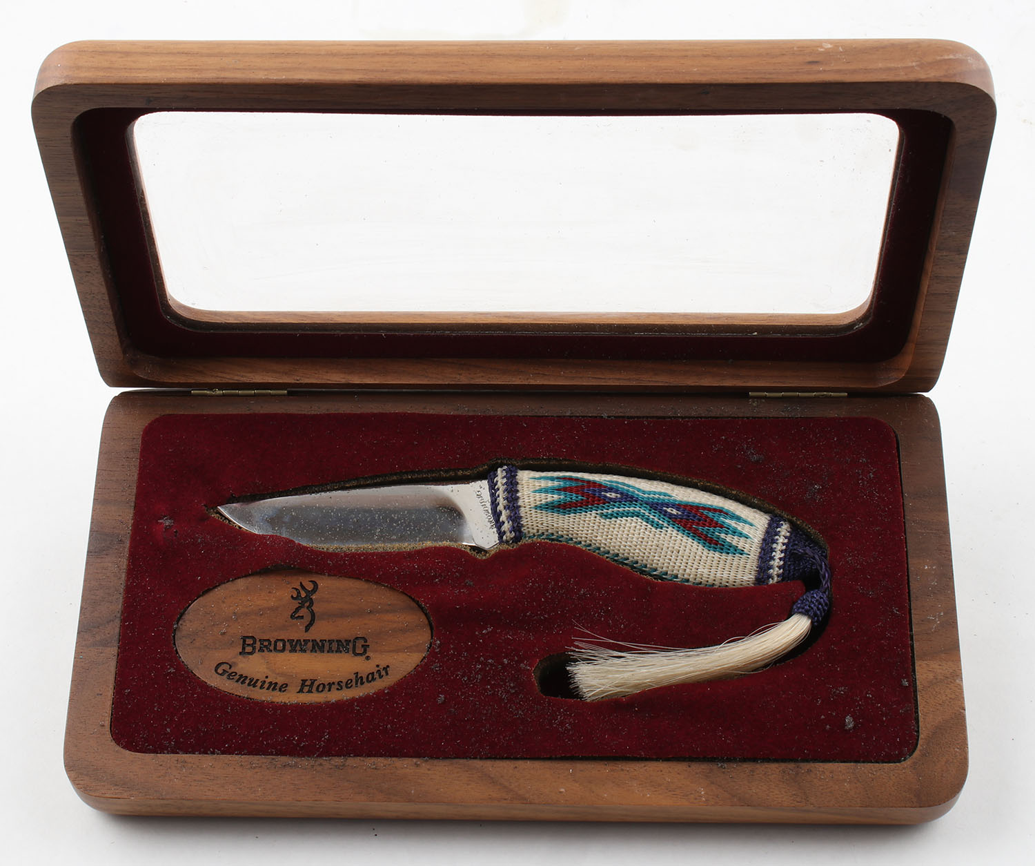 Browning knife, 3'' blade, in orignal case. Grade: Excellent ++ - Value: 40 to 80