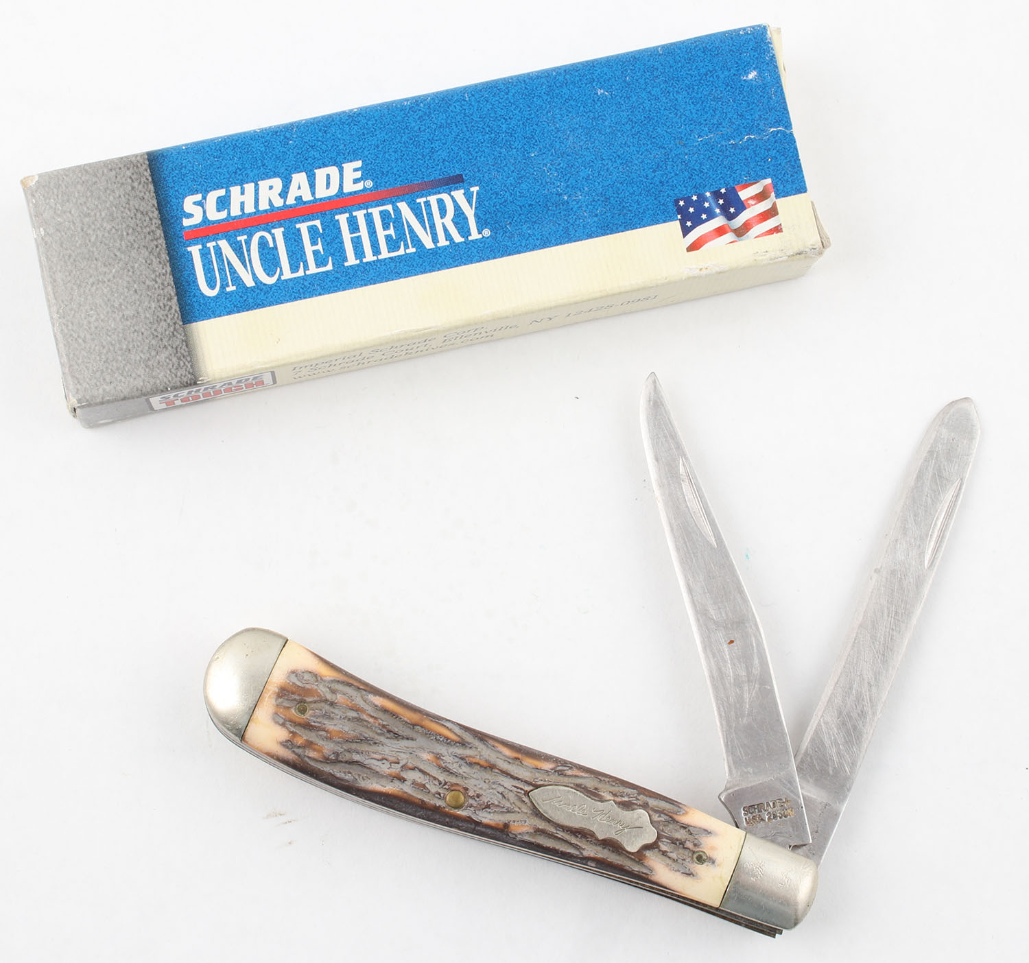 Schrade Uncle Henry folding blade knife, 3'' blade, in original box. Grade: Excellent ++ - Value: 20 to 60